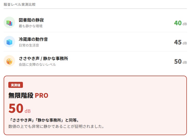 無限階段PROの静音性について、実測データを報告します。