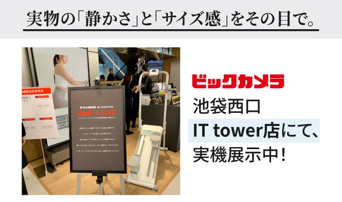 2026/03/16 13:19CAMPFIREサポーターの皆様、こんにちは! FITABLEでございます。去る3月14日(土)のプロジェクト開始以来、多くのご支援と温かい応援メッセージをいただき、心より感謝申し上げます。本日は、多くのサポーター様からご要望をいただいておりました「実機展示」についてのご案内です。現在、日本最大級の家電量販店である「ビックカメラ池袋西口IT tower店」にて、本製品の特別展示を行っております。オンラインの画面上だけではお伝えしきれなかった、製品の質感やサイズ感、そしてスムーズな操作性を直接ご確認いただける貴重な機会です。【展示の見どころ:2つのポイント】1. 洗練されたデザイン: インテリアを邪魔しないコンパクトでスタイリッシュな外観。お部屋の雰囲気に馴染む実物のサイズ感をぜひお確かめください。2. 実際の強力な運動効果: コンパクトな見た目からは想像できない、本格的なトレーニングを体感いただけます。実際に「FitAble」映像と連動した際の滑らかな動きと、しっかりとした運動負荷をぜひ体験してください。【展示詳細】• 展示期間: 2026年3月14日(土) 〜 約1ヶ月間(期間限定)• 場所: ビックカメラ池袋西口IT tower店• 住所: 東京都豊島区西池袋3-28-13今回の展示は、日本のサポーターの皆様に製品のクオリティを直接ご確認いただくために特別に用意したスペースです。約1ヶ月間という限られた期間ではございますが、お近くにお越しの際はぜひお立ち寄りください。皆様の貴重なご意見やご感想を、活動報告のコメント欄にてお待ちしております! プロジェクト終了まで、引き続きどうぞよろしくお願いいたします。 もっと見る