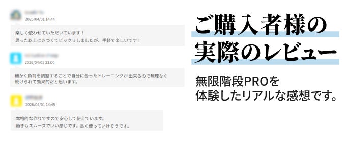 また、実際の使用環境を想定した耐久テストや有害物質に関する評価も完了しています。「無限階段 PRO」は、日々のトレーニングに適した品質と性能を備えた製品です。