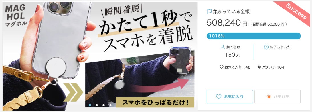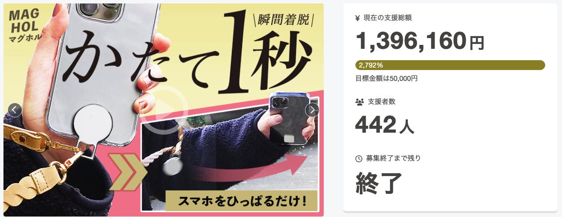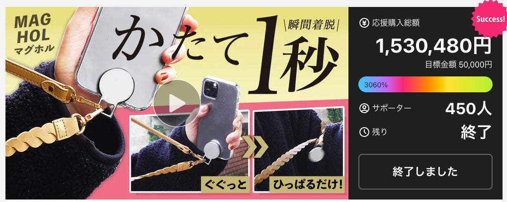 スマホとショルダーストラップを、マグネットで瞬間着脱できる、「MAGHOL」(マグホル)。新色「GOLD」(ゴールド)で再登場!