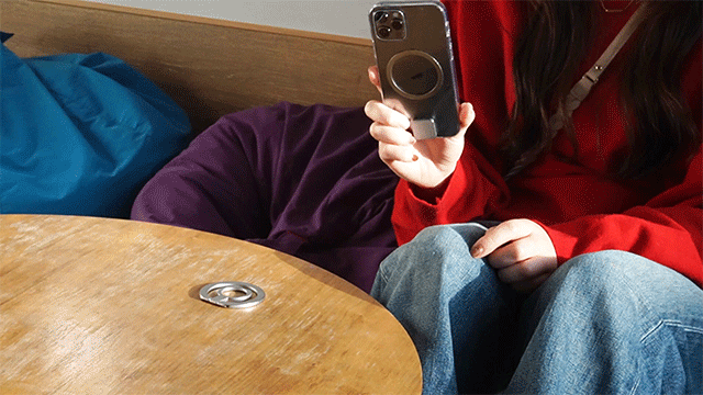 「MAGHOL」の使い方は、「凸マウント」をスマホ背面に貼り付けて、「マグネットホルダー」をストラップ先端に取り付けるだけ。軽量で強固な「アルミ合金」で作られているので、何度取り外しても壊れないしっかりとした作りになっています。