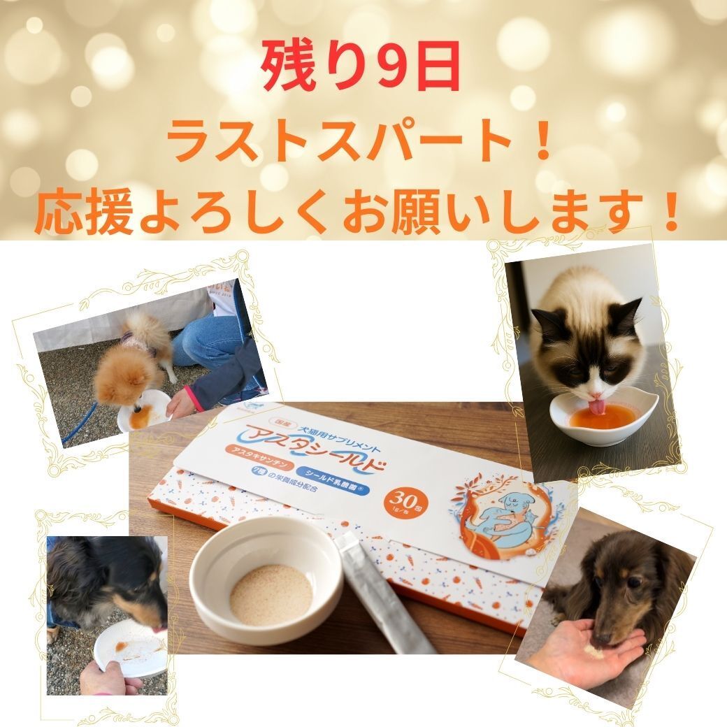 アスタシールドのクラウドファンディングも、残り8日となりました昨日は、新たにお一人の方からご支援をいただきました。大切な想いを託してくださったこと、心より感謝申し上げます。現在、目標の【84%】まで来ることができました。ここまで支えてくださった皆さまのお力があってこそです。ですが、ゴールまではまだもう一歩。このラストスパートの期間、「応援しているよ」の気持ちとしてのご支援や、「こんな取り組みがあるよ」と伝えていただくシェアが、何よりの励みになります。一頭でも多くの犬猫ちゃんの健やかな毎日につなげるため、最後まで走り切ります。どうか引き続き、あたたかい応援をよろしくお願いいたします。プロジェクトページはこちらからhttps://camp-fire.jp/projects/890975/viewペットとくらしのお店いいね! 代表 森本明美
