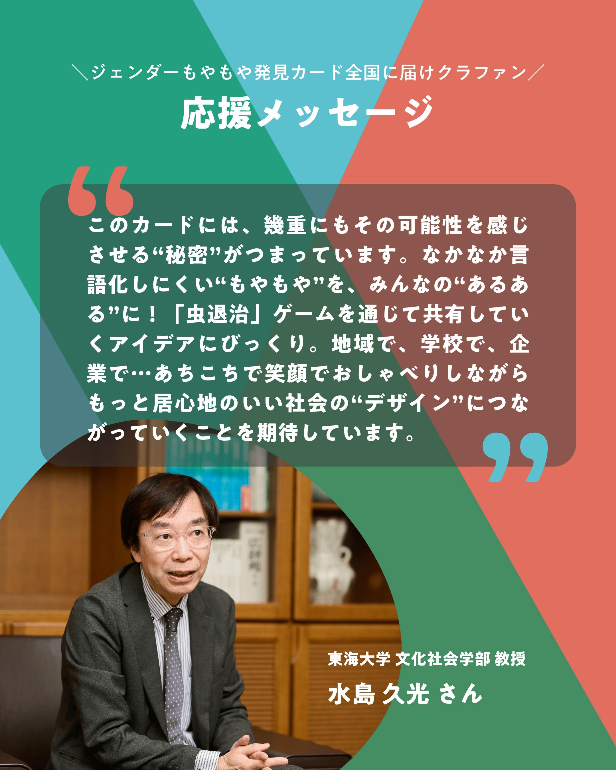 東海大学 文化社会学部 広報メディア学科 教授 水島久光さんからの応援メッセージ