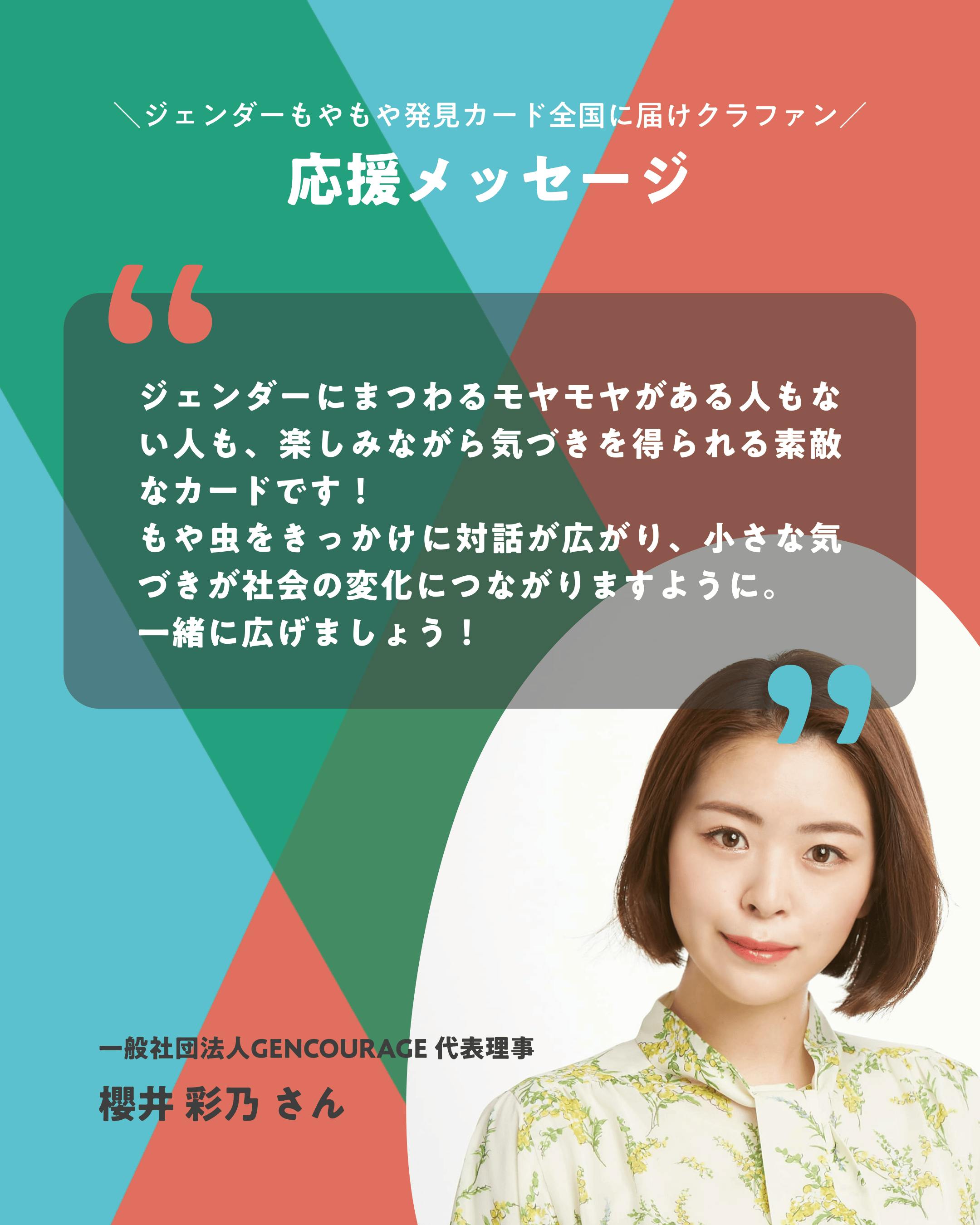 一般社団法人GENCOURAGE 代表理事 櫻井彩乃さんからの応援メッセージ