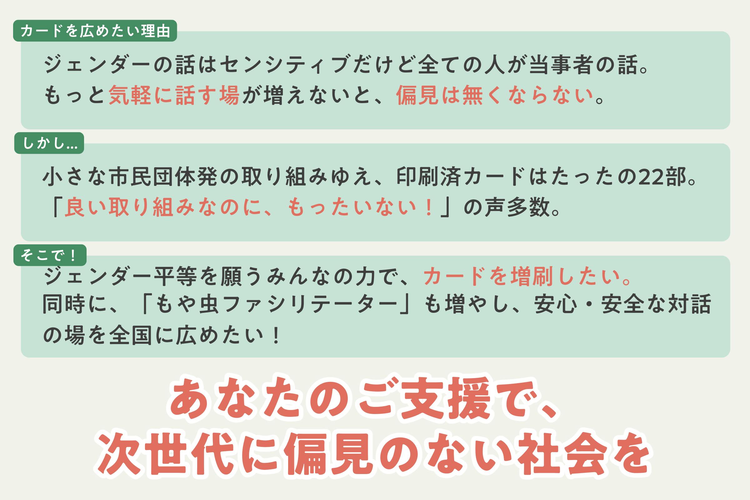 ぜひ応援コメントや「#ジェンダーもやもや発見カード 」のハッシュタグを添えていただけると、励みになります。