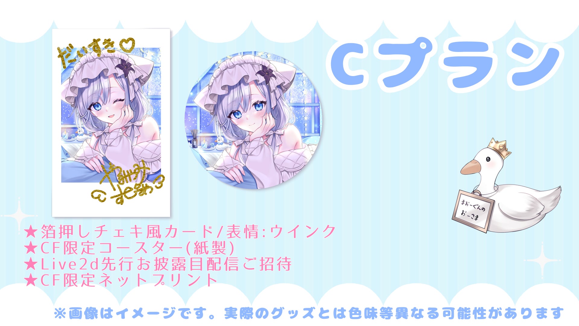 💠 リアルグッズの生産についてリアルグッズは個数確定後に生産を行うため、お届けまでに少しお時間をいただきます。掲載している画像はサンプルですので、実物とは若干異なる場合があります。