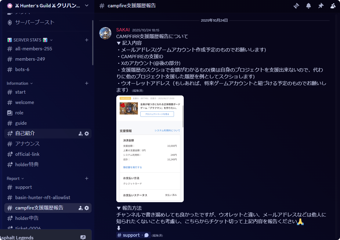 郵送ご希望の際も、必ずCryptoHunterの公式Discord「Hunter`s Guild」でチケットを切り、記載内容を全て入力した上、郵送の旨をお伝えください!
