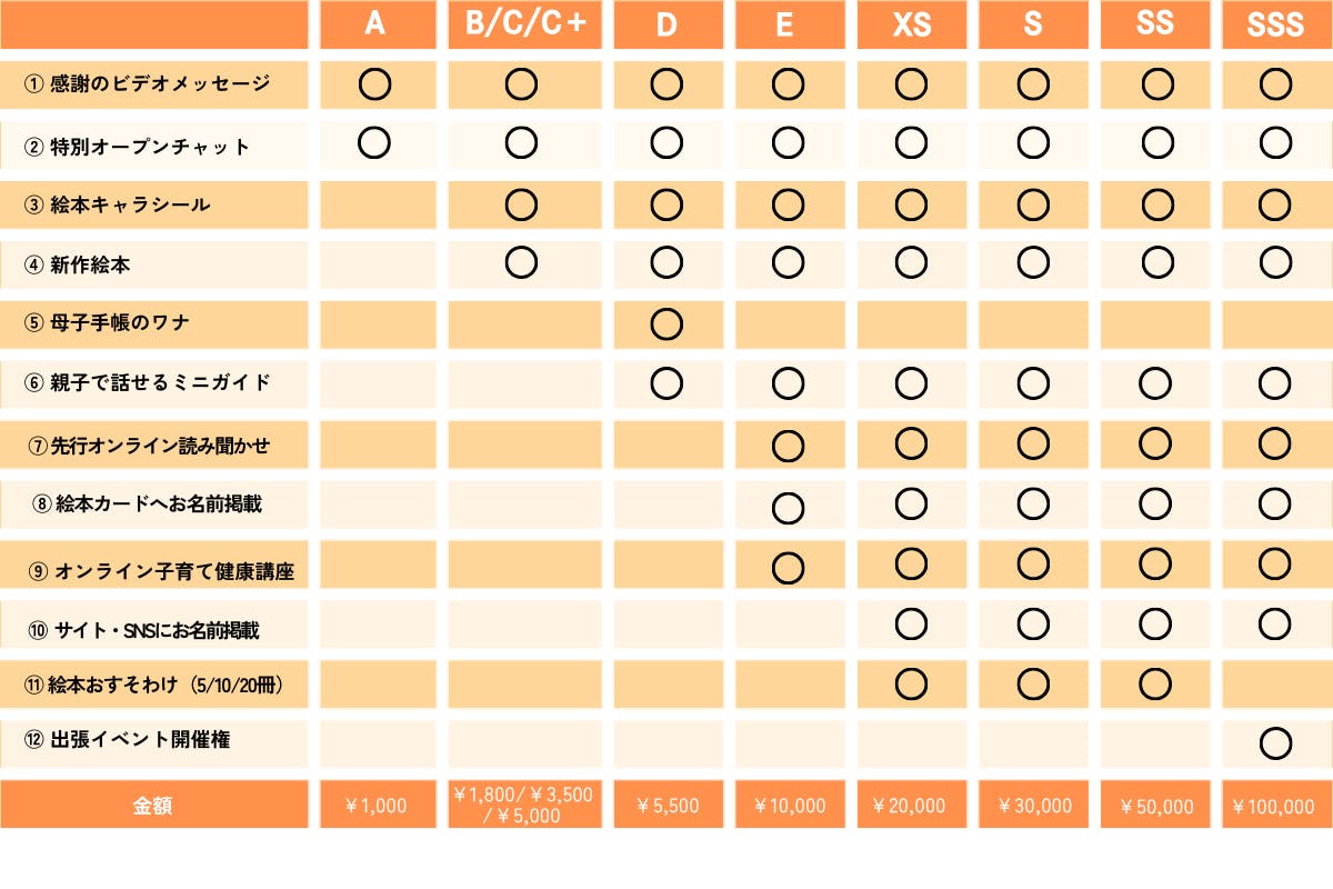 支援プランに応じて13種類のリターンをご用意しました。