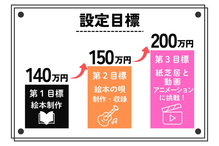 150万円達成後、200万円を目指して挑戦さらに支援金が集まった場合、保育園や幼稚園、図書館やイベントで使える「絵本・紙芝居バージョン」を制作します。