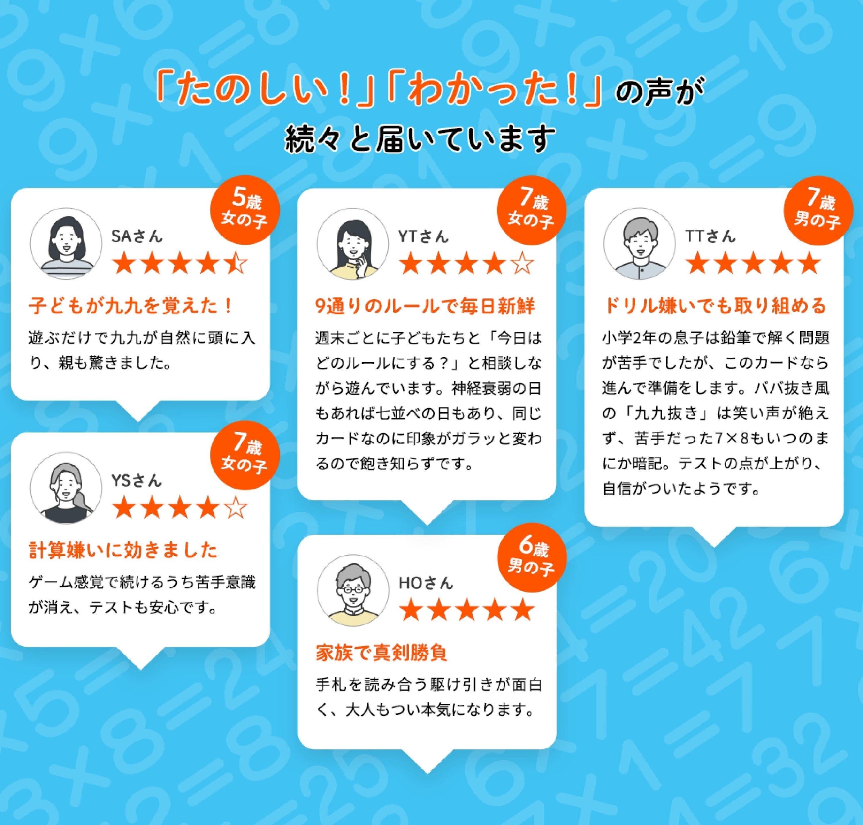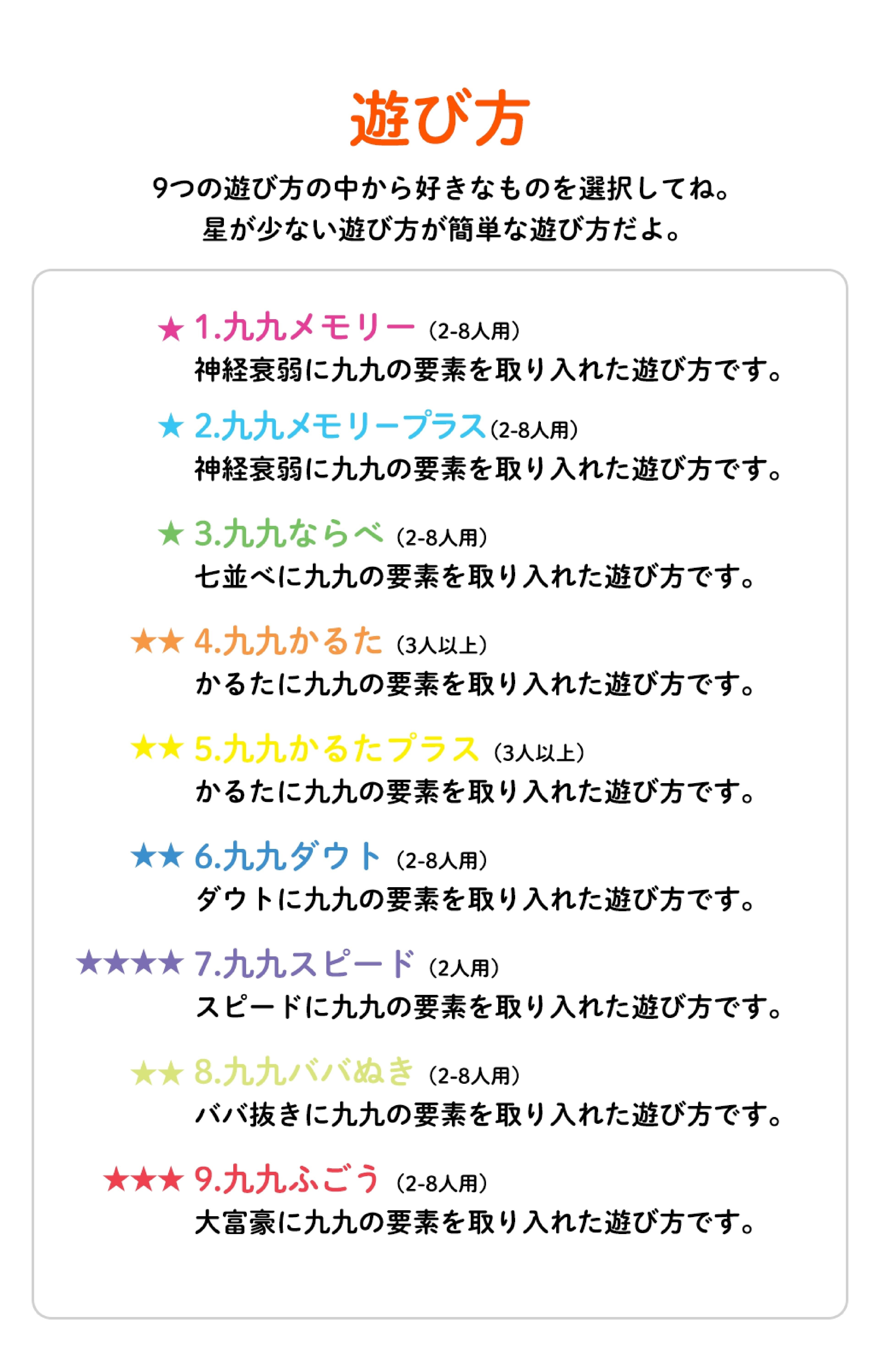 私たち九九あそびの製作陣は九九という鬼門を楽しく乗り越えて欲しいという思いからこのゲームを制作しました。小学生の鬼門である九九に苦戦した記憶のある人がほとんどだと思います。我々、九九あそび製作陣の中にも苦い思いをした者は多く存在します。その記憶や苦労を制作の力に変えて今回の「九九あそび」を制作いたしました。