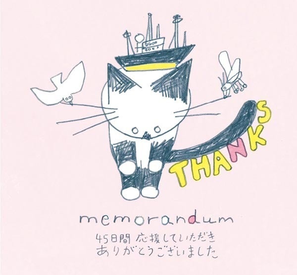 9月20日いっぱいをもって、クラウドファンディング支援募集期間が終了致しました。 結果、225人の方に総額1,731,000円のご支援をいただきました。最後まで応援していただいたみなさまに心よりお礼申し上げます。 これから本格的に「メモランダム」本やリターンの制作、「メモランダム展」の準備などにとりかかってまいります。 途中経過をひきつづきこちらで報告させていただきますので、あたたかく見守っていただきますようお願い申し上げます。 須山奈津希&ヒロイ・パブリシング