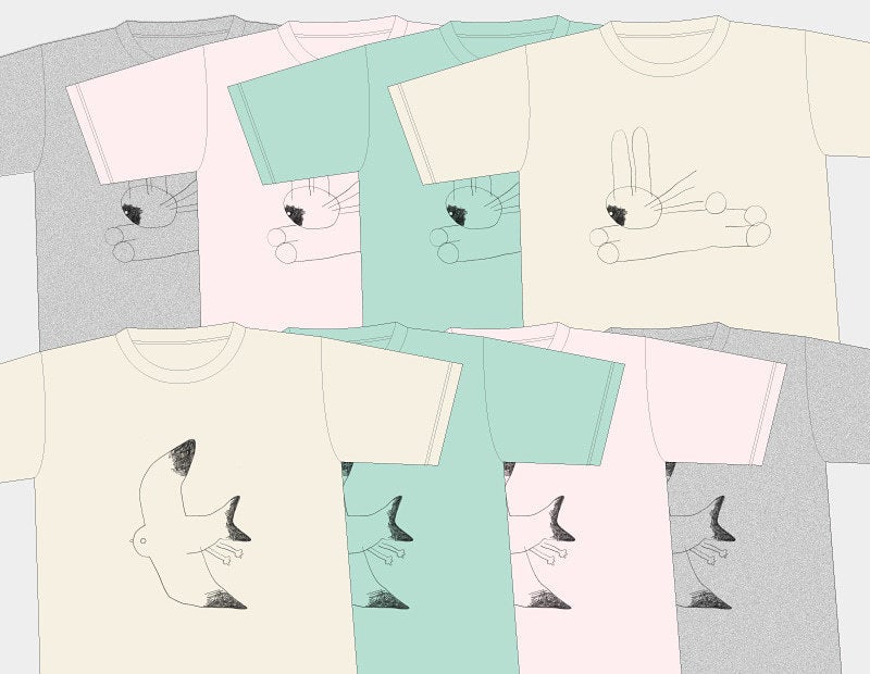 お子さま向けにTシャツ2点をリターンに追加しました。 キッズTシャツ「うさぎ」と「カモメ」。いずれも4色展開で、サイズは100/110/120の3サイズです。 詳しくは、プロジェクトページ内リターンの欄をご確認ください。