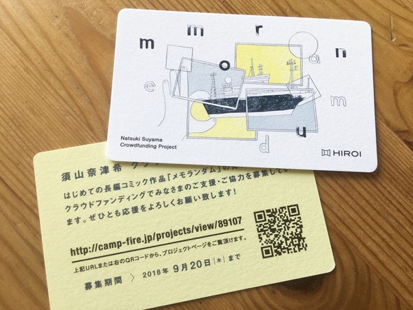 須山奈津希クラウドファンディングプロジェクトのイラスト入りカードを作りました。名刺サイズの小さなカードです。 須山奈津希「あたらしくはじまる」展などで配布中ですが、置いていただけるお店、配布していただける方など募集しております。 ご連絡いただけましたら郵送させていただきますので、どうぞよろしくお願い致します。 須山奈津希 & ヒロイ・パブリシング
