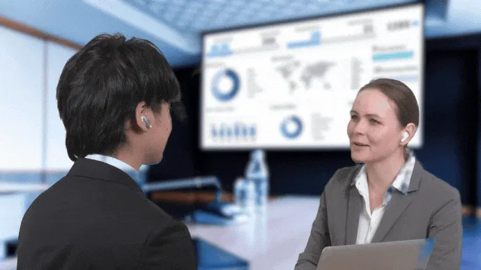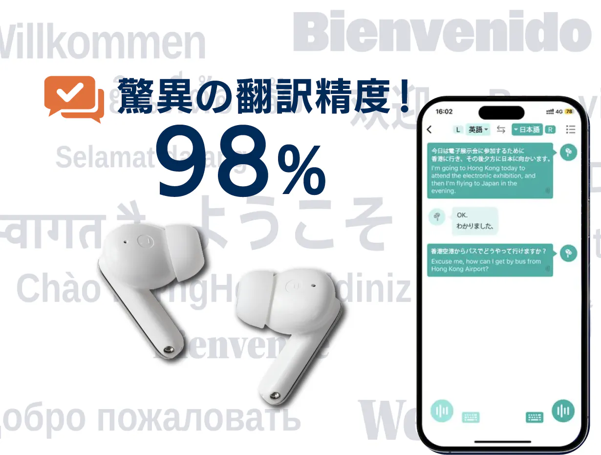 最大98%の翻訳精度最短0.2秒のスピード翻訳するから、ネイティブスピーカーのように外国人と会話ができ、空いた両手で資料確認や身振り手振りであなたの存在感を高めることもできるから、ビジネスシーンでも心強い次世代コミュニケーションツールなのです。