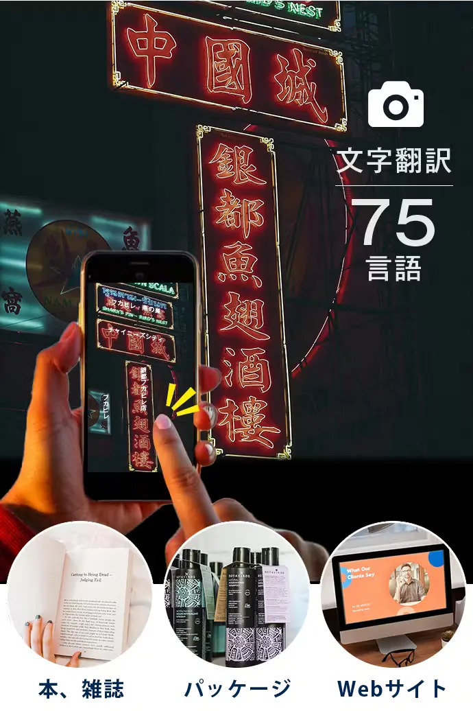 スマホのカメラで外国語の文字をOCR(光学式文字読取)でテキスト化して翻訳する機能モードです。