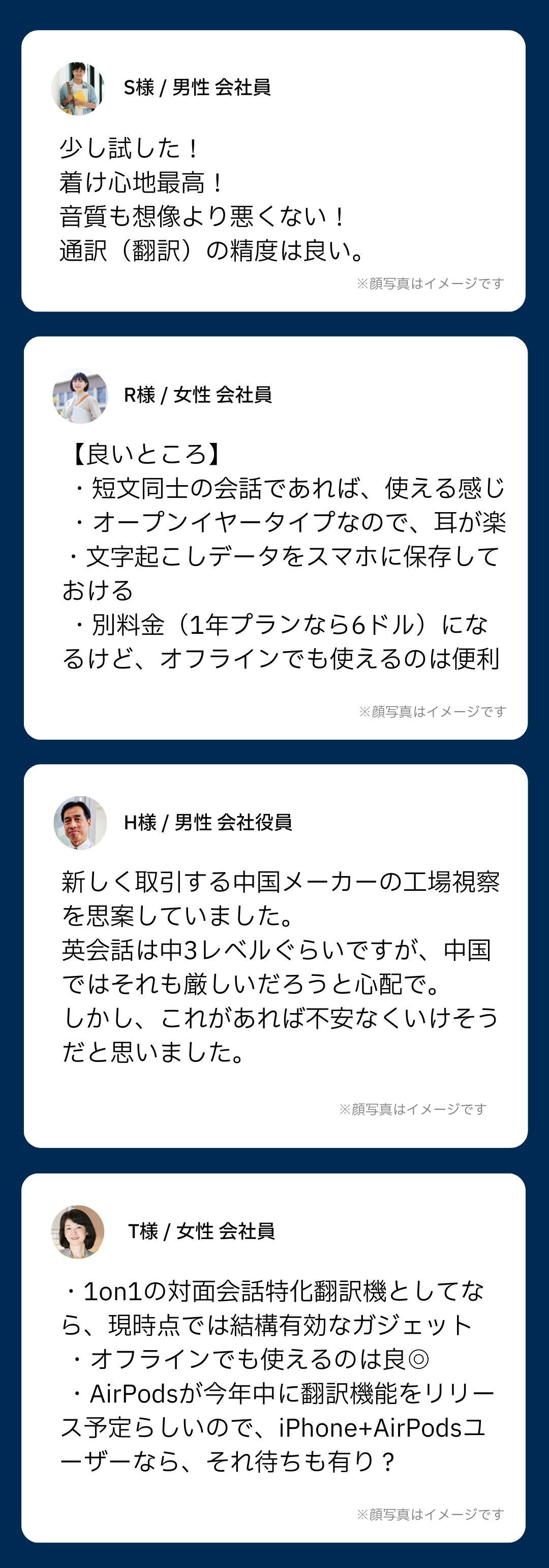 反対に相手の話し言葉はスマホのマイクで収音されて翻訳され、あなたのイヤホンに音声として伝えられます。