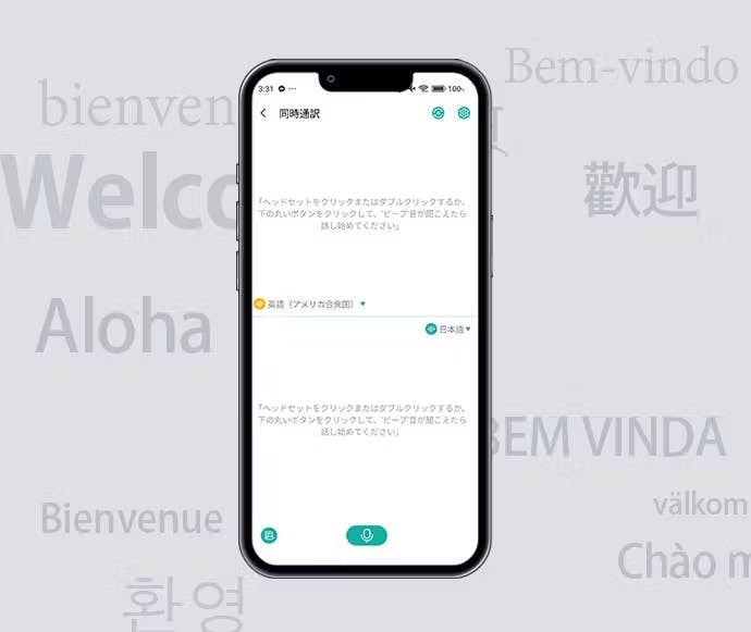言語を設定し、画面中央の下部にあるマイクのアイコンを押すと、翻訳を開始します。