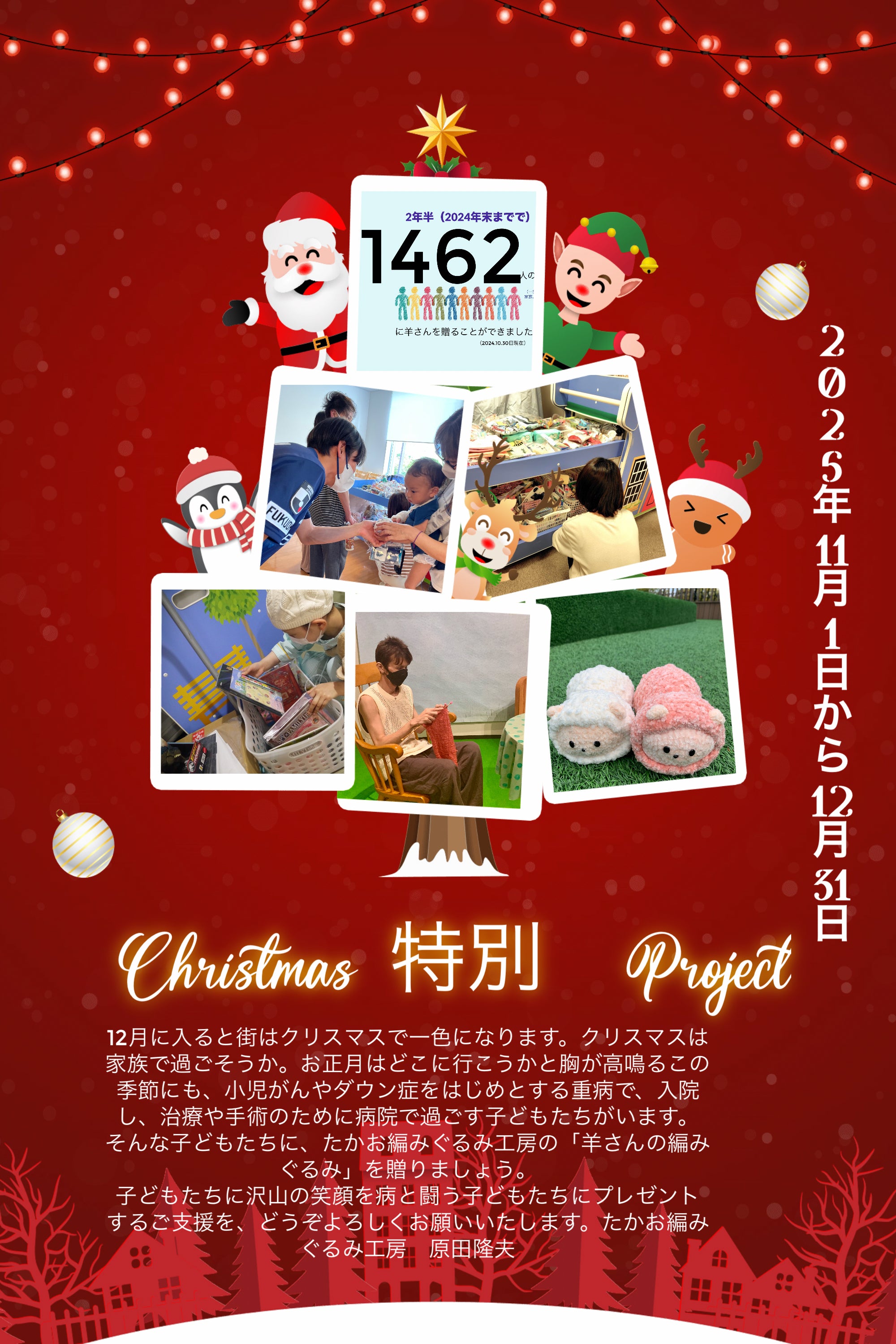 クリスマスを目指してhappyを重病の子どもたちに贈る特別クリスマス羊さんプロジェクト!
