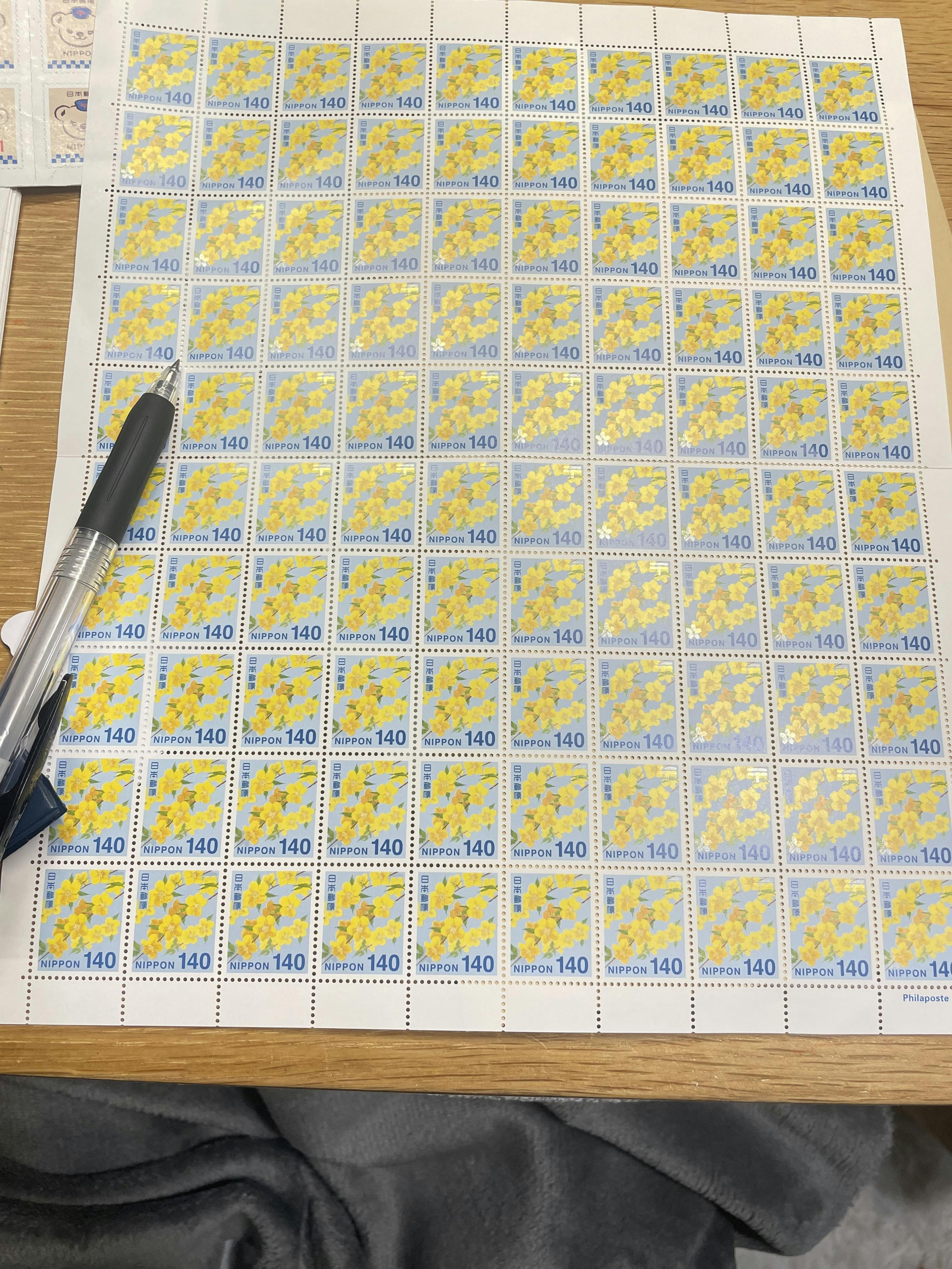 郵便局で、140円切手を300枚。メールやSNSの時代にお手紙は珍しいみたいで、いつも郵便局ではビックリされます。少し100枚綴りの切手を見たら(1シート14000円なり)テンション上がります。