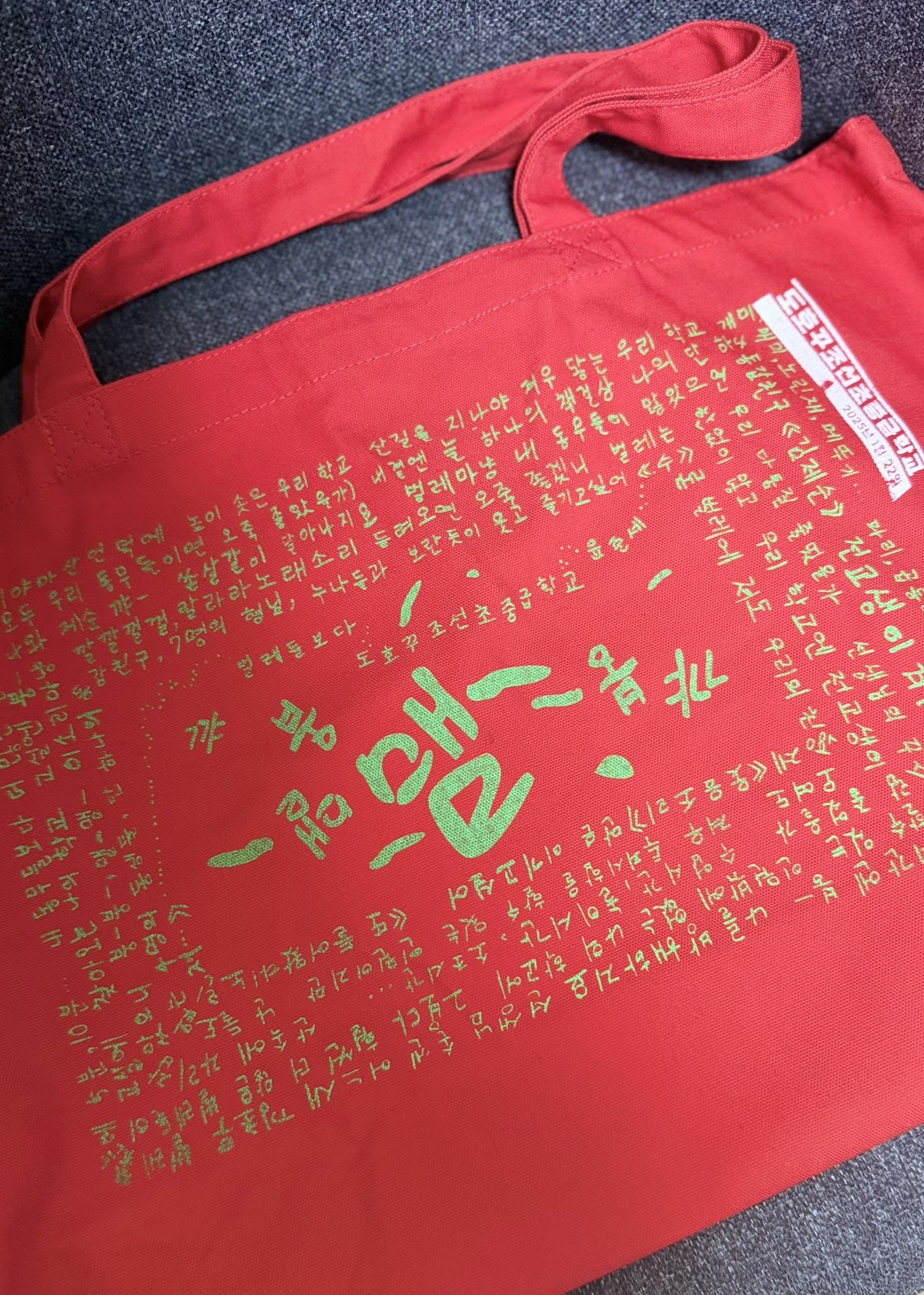 また、東北朝鮮学校を応援する「東北朝鮮学校とつながる宮城の会IO(イオ)」 のみなさんが制作したトートバッグは、写真家・志賀理江子さんのアトリエで一枚ずつシルクスクリーンで刷られた特別なもの。