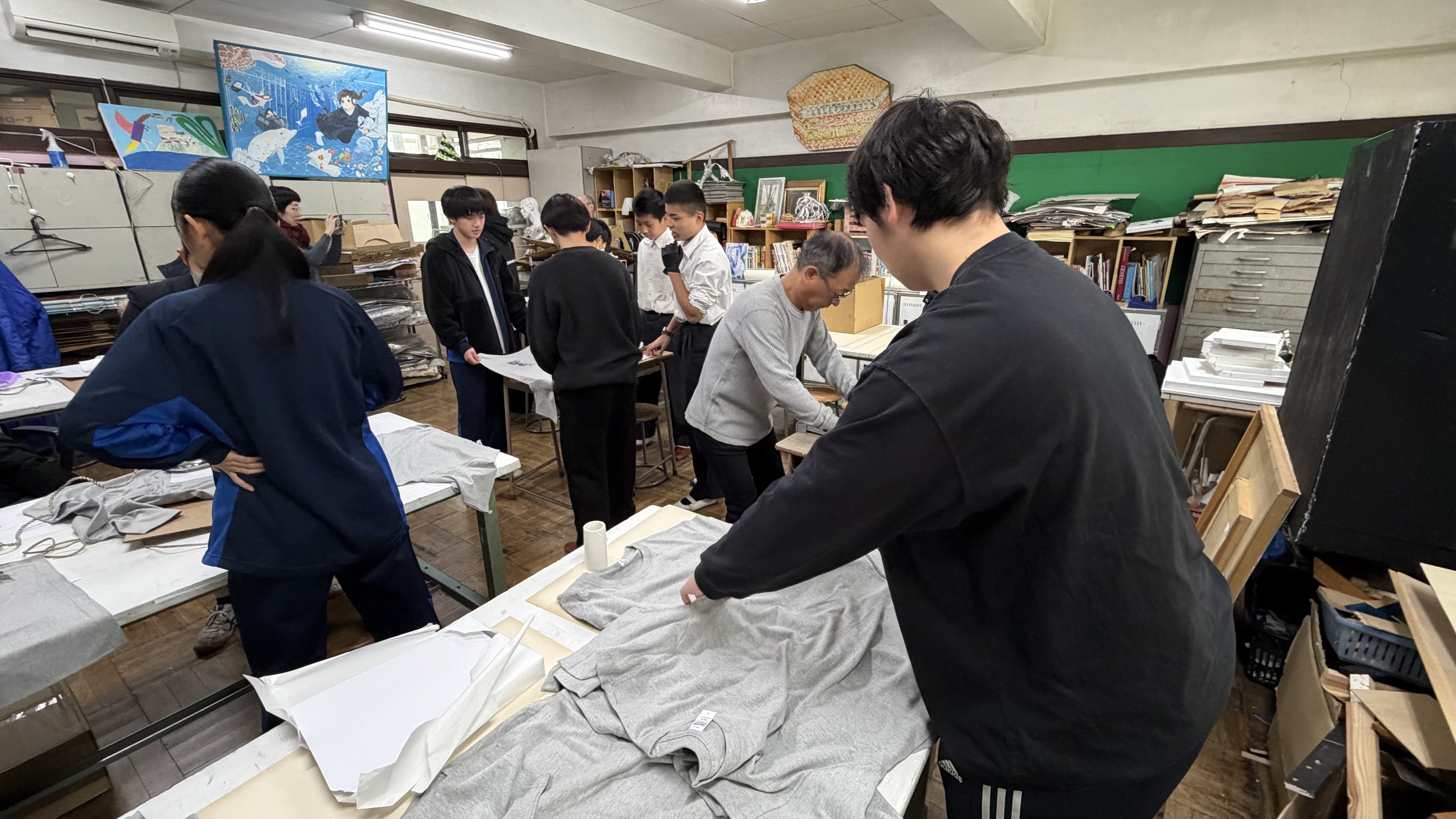 午前中のシルクスクリーン体験では、高級部1年生の秦彌羽さんがデザインしたイラストから版を起こし、オリジナルTシャツを制作しました。