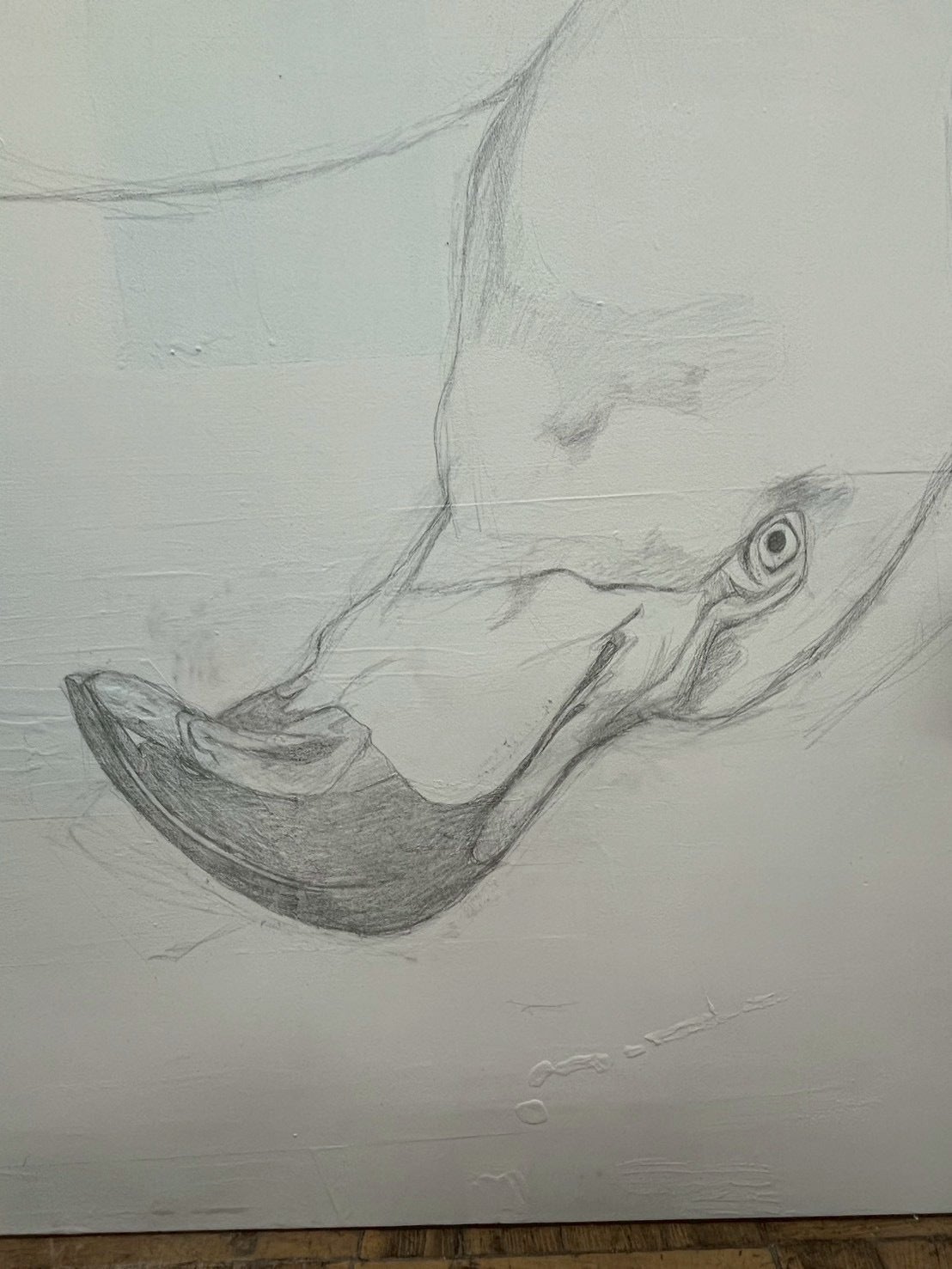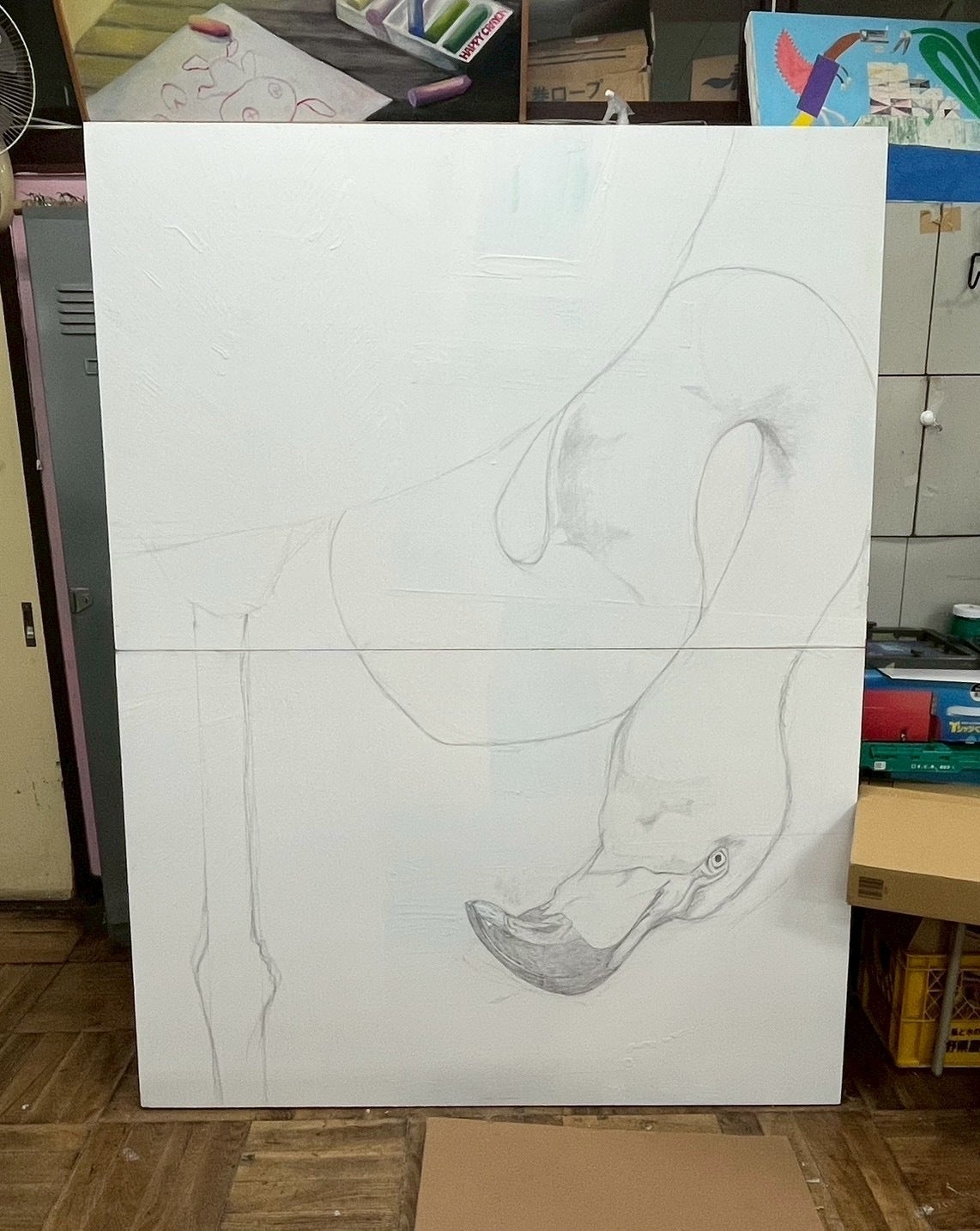 すでにパネルに下描きを始めていて、特に顔の表現に力を入れて制作しています。