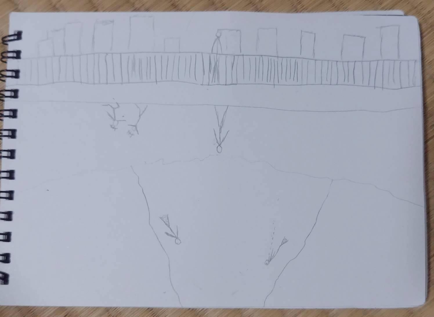 なので今回は上の三分の一の部分には今自分が生きてる東京、下の三分の二の部分には済州島の海女さんや服装などを描くことにしました。