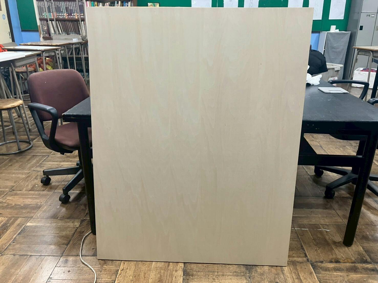 美術部生徒のみなさんからの活動報告、今回は中級部3年生の金龍翔さんからのメッセージです。こんにちは。中3の中級部部長 金龍翔(キン リョンサン)です。このパネルは以前作品構想の時に考えた物を描く予定のパネルですまだパネルしかできてませんが作品完成し部展活動できるよう頑張ります。