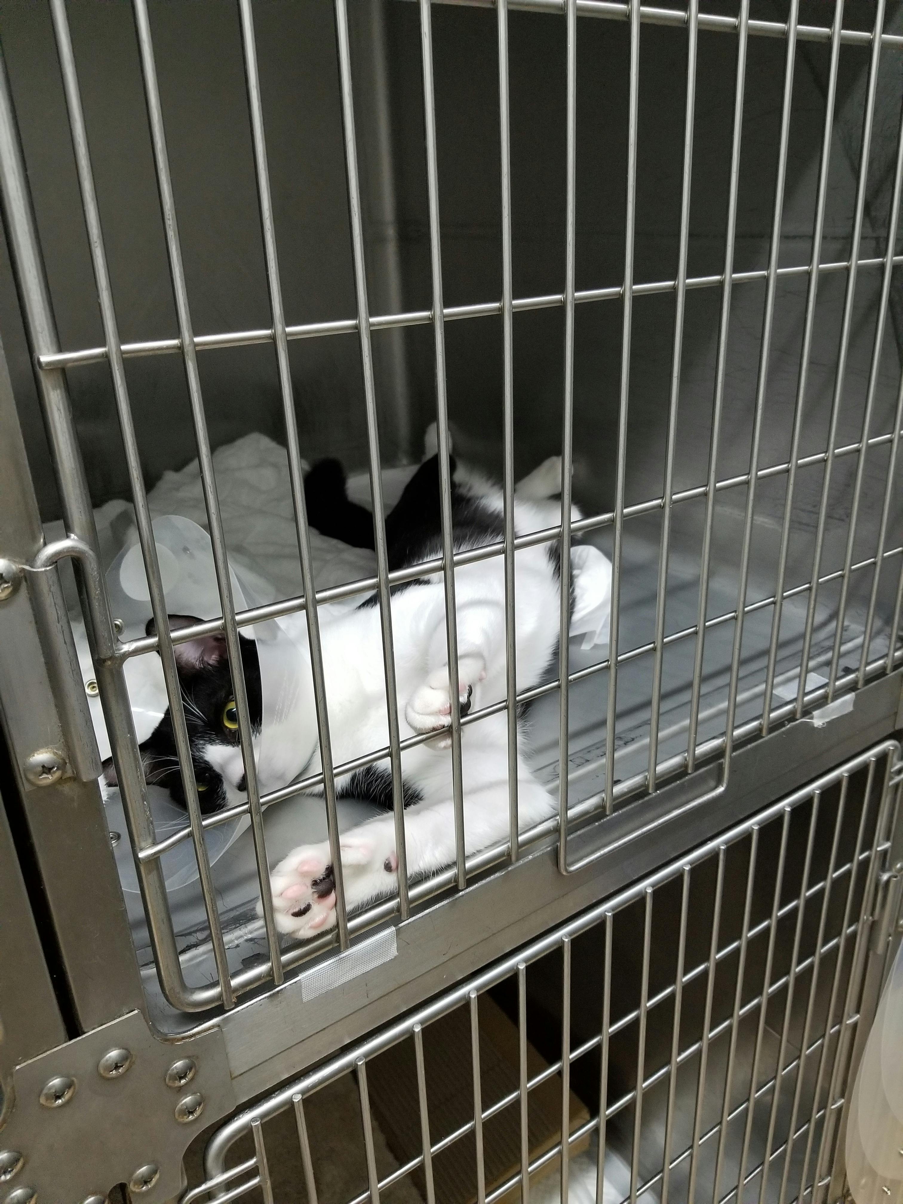 点滴が終わると楽になったのか、猫舎でのびのびしておりました。