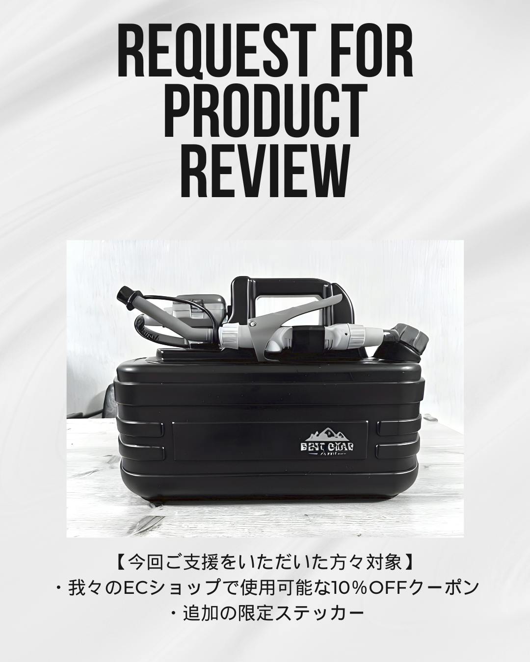 製品レビューをご投稿いただいたお客様には、我々のECショップにてご使用頂ける10%OFFクーポン、追加の限定ステッカーをプレゼントいたします!