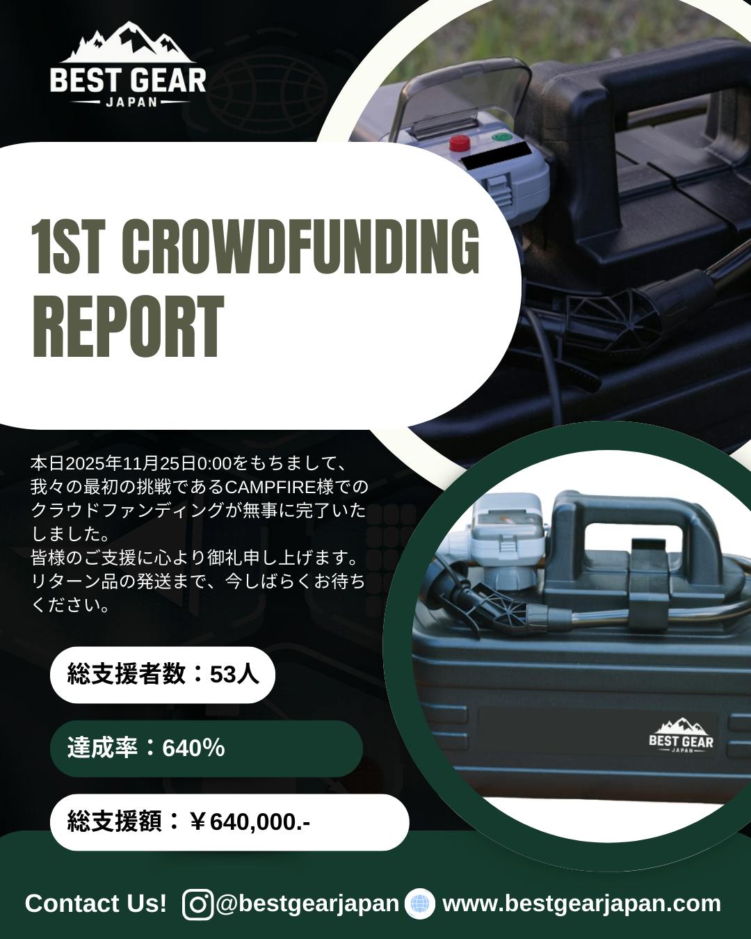 本日2025年11月25日0:00をもちまして、我々の最初の挑戦であるCAMPFIRE様でのクラウドファンディングが無事に完了いたしました。