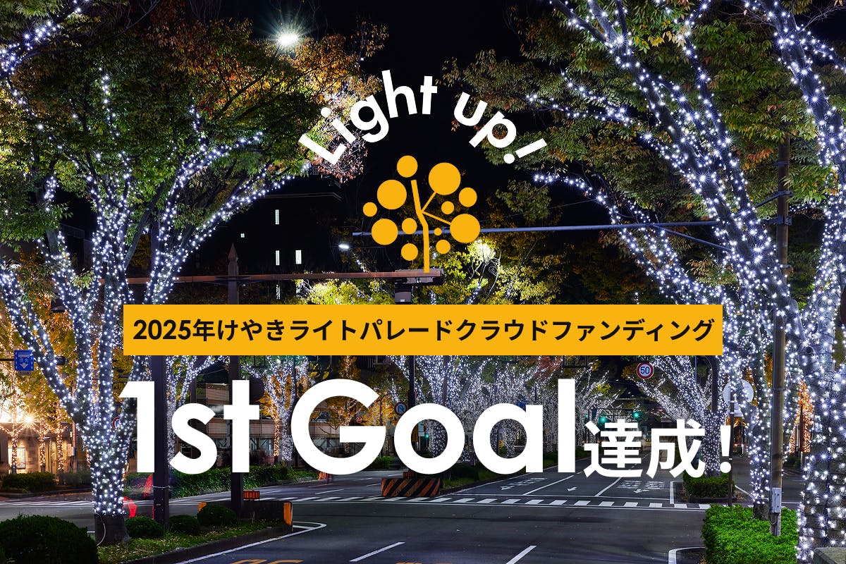 2025/12/06 23:12いつも「けやきライトパレード」、ならびにクラファンプロジェクトを応援いただき誠にありがとうございます!本日、1stゴールとして設定していた50万円を達成いたしましたのでご報告いたします!この取り組みに早くから共感いただき、背中を押してくださった皆さまへ改めて心より御礼申し上げます。ありがとうございます!そしてただ今より、2ndゴールに向けて本クラファンも動き出します。2ndゴールは「支援者数200名」です!現在の支援者数が95名となり、すでに沢山の方にけやきライトパレードを知っていただき応援いただいております。この輪をもっともっと広げて、より多くの方とこのイベントを共有していきたいというのが運営としての願いです。初年度、昨年とも支援者200名の壁を突破することは叶いませんでした。今年こそはこの大きな目標を達成できるよう、再度皆様にお力添えをお願いさせてください!クラウドファンディングも残すところあと20日!既にご支援いただいた皆様には、感謝の気持ちをお伝えするとともに、ぜひ皆様の周囲にもけやきライトパレードならびにクラウドファンディングについて呼びかけていただきたいと考えております!引き続き、温かい応援・シェアのご協力をいただけますようお願い申し上げます! もっと見る