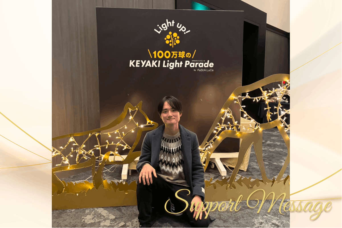 いつも「けやきライトパレード」、ならびにクラファンプロジェクトを応援いただき誠にありがとうございます!本日、支援者数が50名を突破いたしました。まずは、この取り組みに共感し、背中を押してくださった皆さまへ心より御礼申し上げます。今年で3年目となるライトアップですが、毎年楽しみにしてくださる地元の方々、初めて知って興味を持ってくださった方々、そして遠方から応援してくださる方々など、さまざまな温かいお気持ちが集まり始めています。皆さま一人ひとりのご支援が、冬のけやき大通りを明るく照らす光そのものとなっています。現在点灯式準備の真っ最中!皆さまにより良い形で灯りをお届けできるよう、スタッフ一同取り組んでおります。引き続き、温かい応援・シェアのご協力をいただけますと大変励みになります。いよいよ11月23日にけやきライトパレード開始!今年も11月23日から「けやきライトパレード」が始まります。ぜひ今年もイルミネーションをお楽しみください!今年はさらにスケールアップし、全長約3km・130万球のLEDによる、日本一のイルミネーションが完成します!このところぐっと寒くなってまいりました。どうぞ皆様暖かくしてお過ごしください。それでは、11月23日、けやきライトパレードの光の下で皆さまとお会いできることを楽しみにしております!