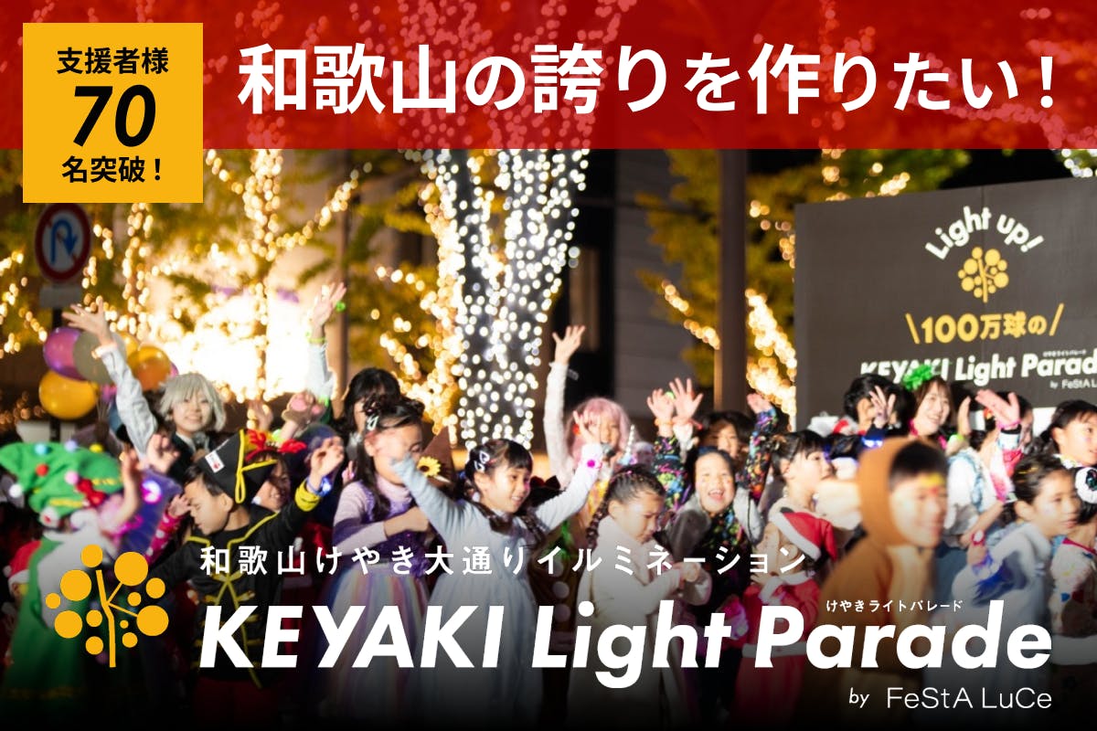 日本一のイルミネーションを和歌山の誇りへ!けやきライトパレードを、和歌山に関係するすべての人で共有したい!