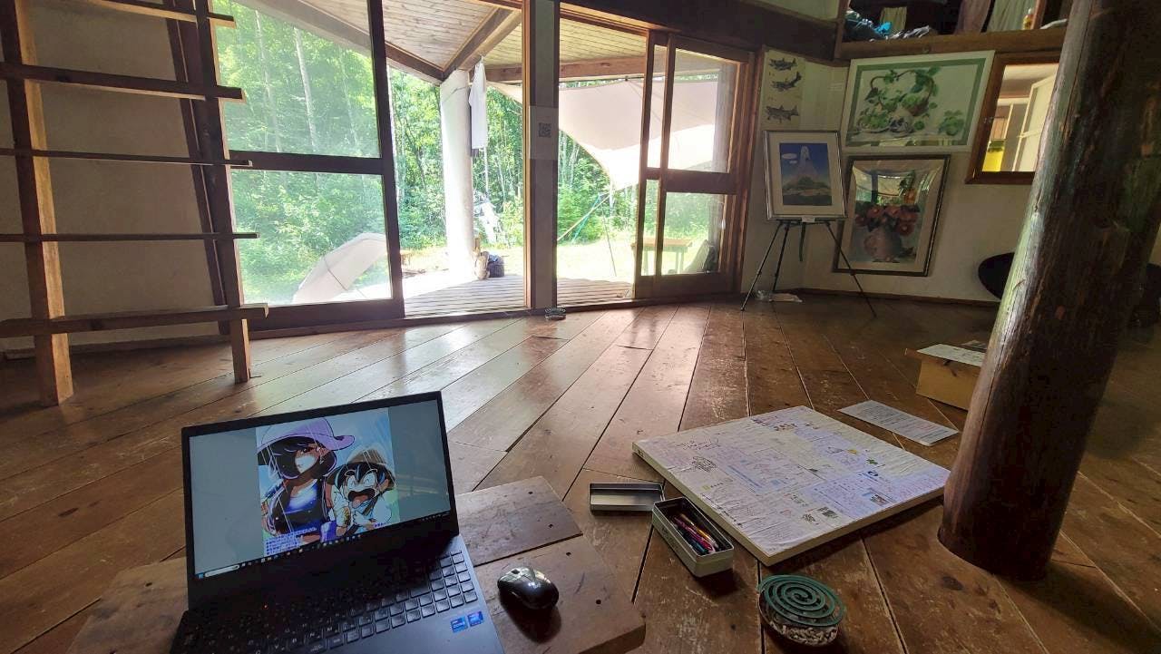 ↑出身の武蔵野美術大学ワンダーフォーゲル部では、現役時代は部長を務め、「南アルプス百名山一筆書き縦走」や、「ムサビ清里山荘から鷹の台キャンパスまでの奥秩父山塊縦走」をしました。右の写真は部が所有する山小屋で、僕きさいちはOBとして管理代表をしています。山小屋では、現役ムサビ学生部員・OBが参加する部の展開会があり、作品発表の交流もしています。↓