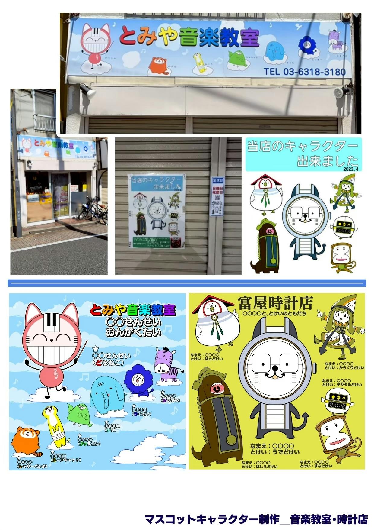 ②親戚の時計店・音楽教室の看板・キャラクター作成。