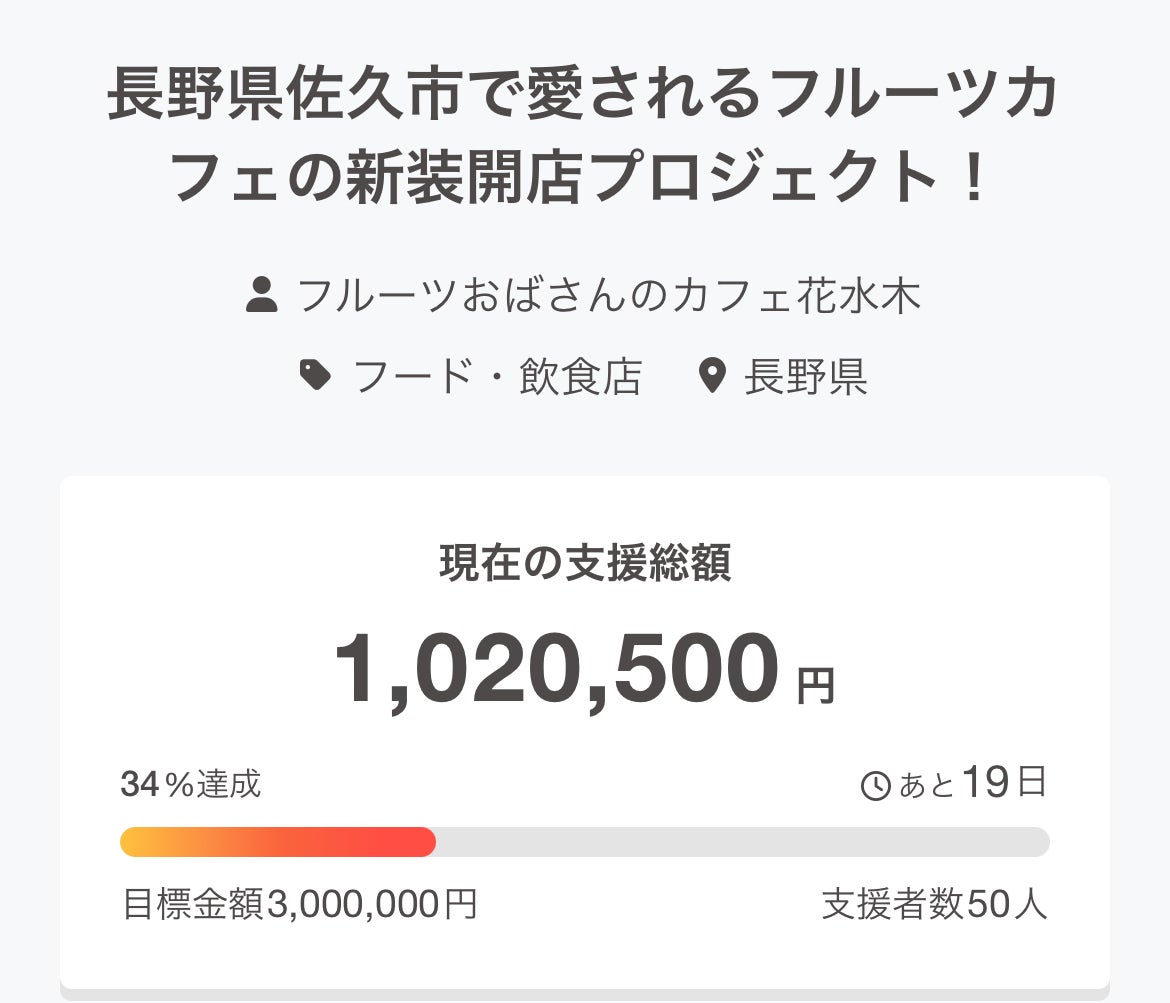 また、クラウドファンディングにつきましては、皆さまのおかげで 支援金が100万円を突破し、ご支援者様は50名となりました。たくさんのご協力を本当にありがとうございます。