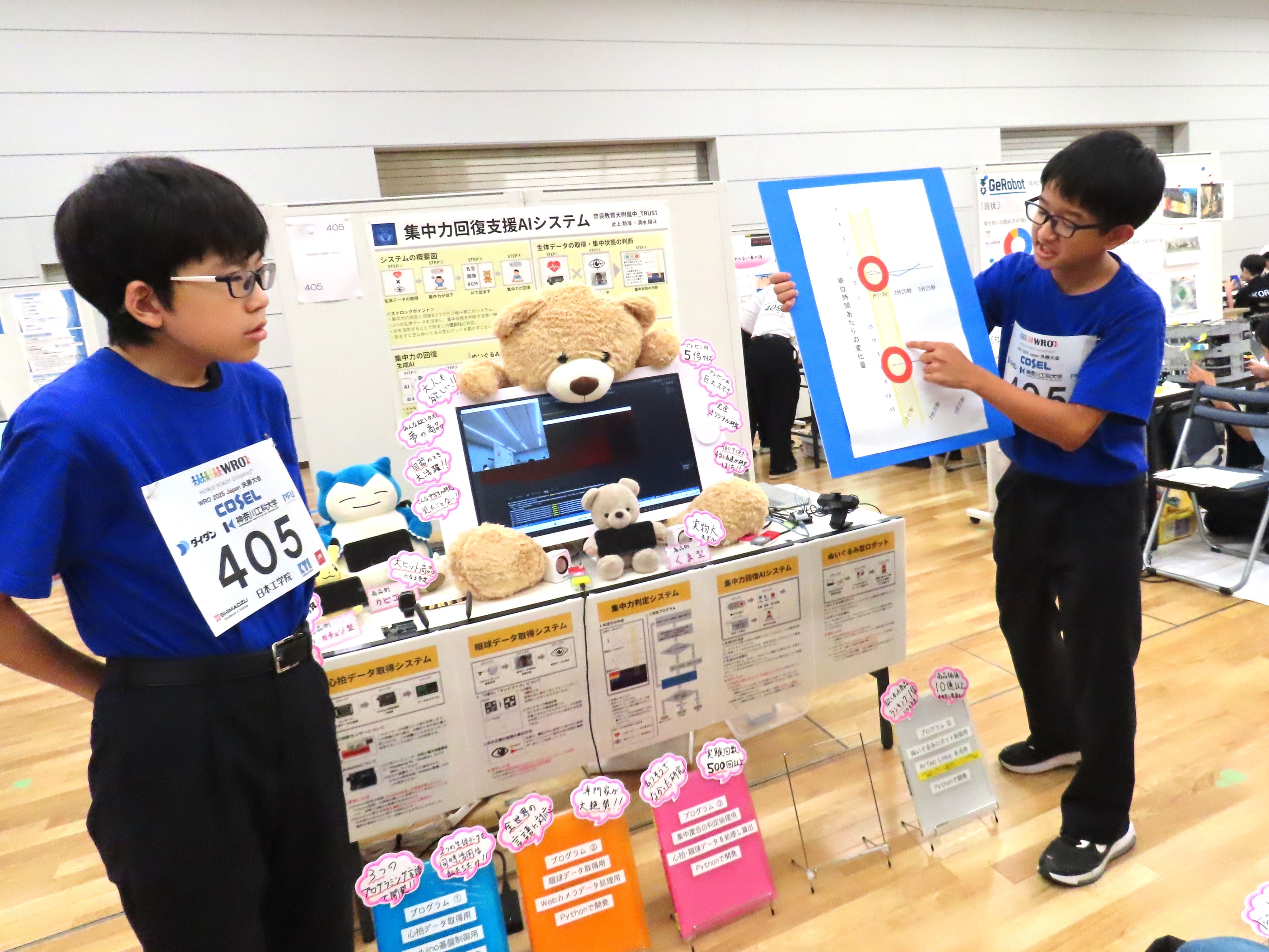 僕たちは、令和7年8月に東京で開催された世界最大級の国際ロボットコンテスト「WRO(World Robot Olympiad)」全国大会のFuture Innovators部門で、研究開発したロボットシステムを発表し、全国最優秀賞を受賞しました。