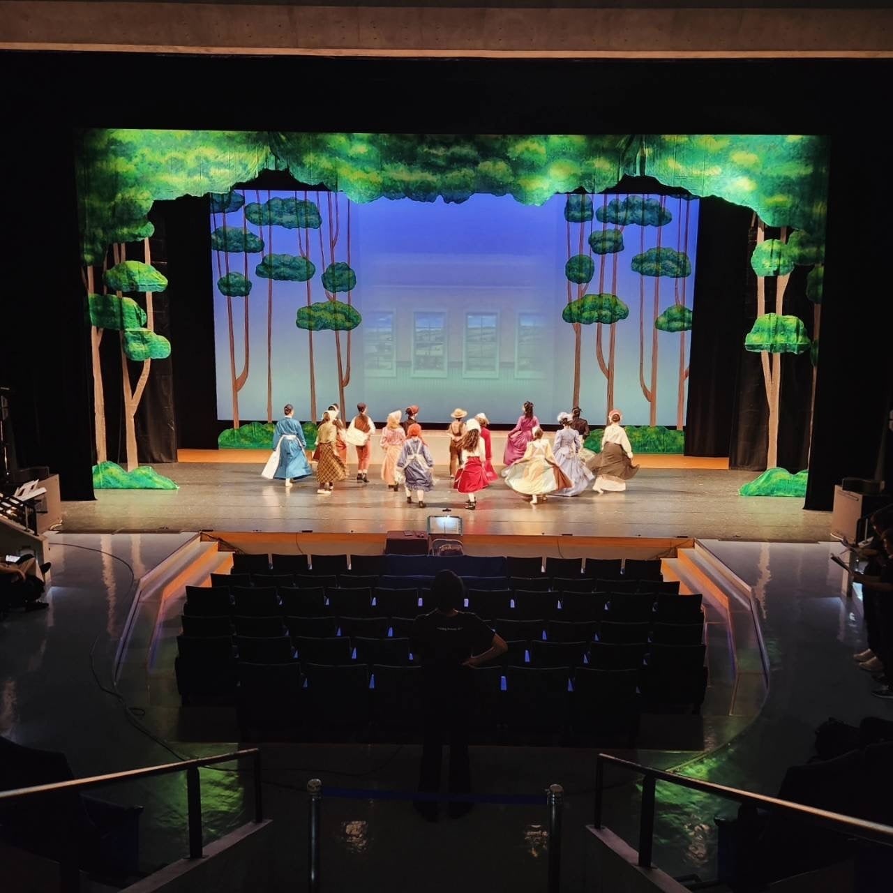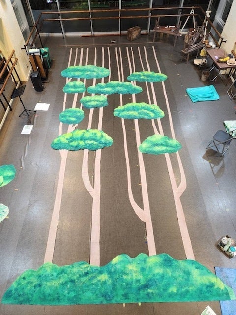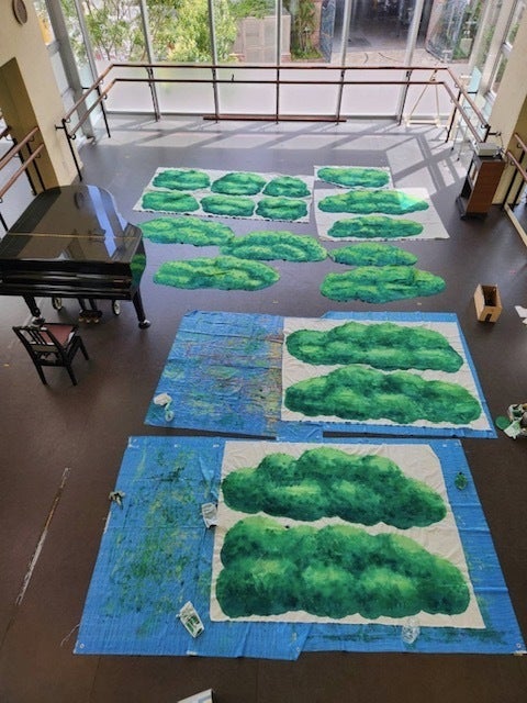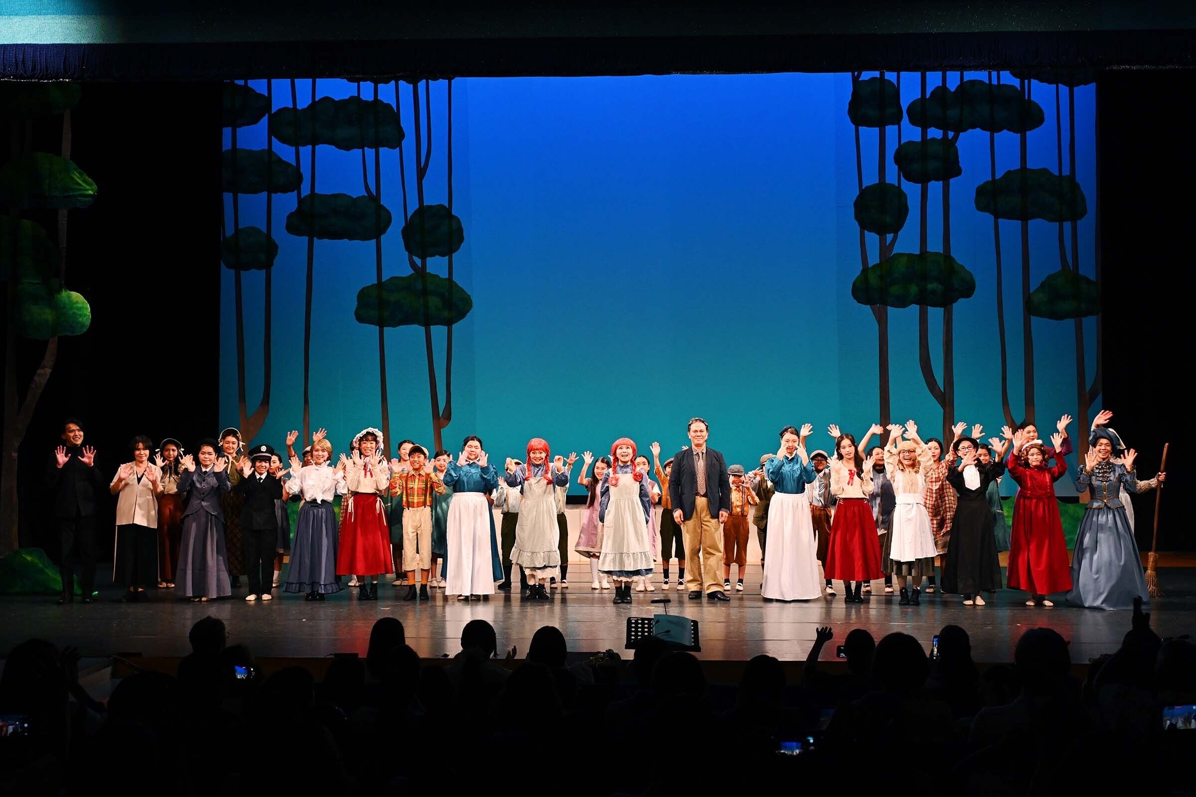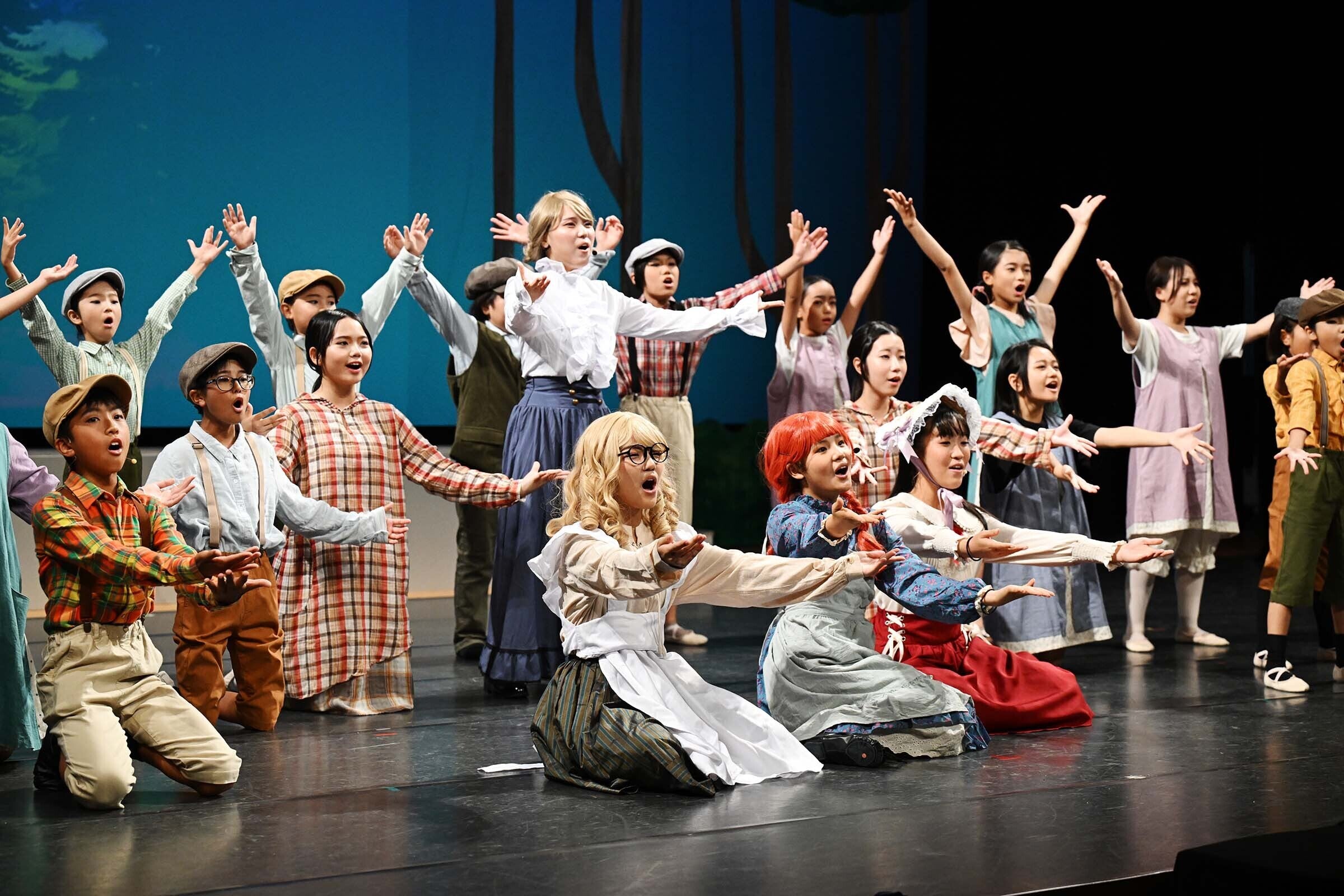 私たちは県内では唯一ミュージカルを上演している合唱団です。歌うことはもちろん、演技やダンスを取り入れることで、表現力、集中力、リズム感を身につけるレッスンをしています。更に舞台大道具や小道具もほとんどが手作りですが、保護者の皆さまには負担をかけないようスタッフで創り上げています。今年の8月の定期公演ミュージカル「赤毛のアン」では舞台背景幕も描きました。