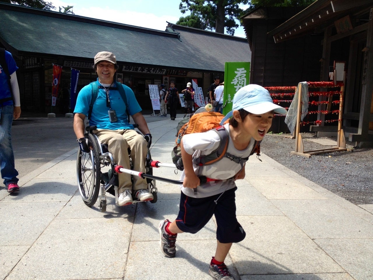 篠原は以前『おもてなし研修』と言う名のもと,一般人に車椅子の扱い方視覚障害者の観光地案内する一環でジンリキを使い高尾山に登りました。車椅子で登れないと思っていた山が皆さんの力で登ることが出来その清々しい記憶が忘れられずこのプロジェクトを立ち上げました