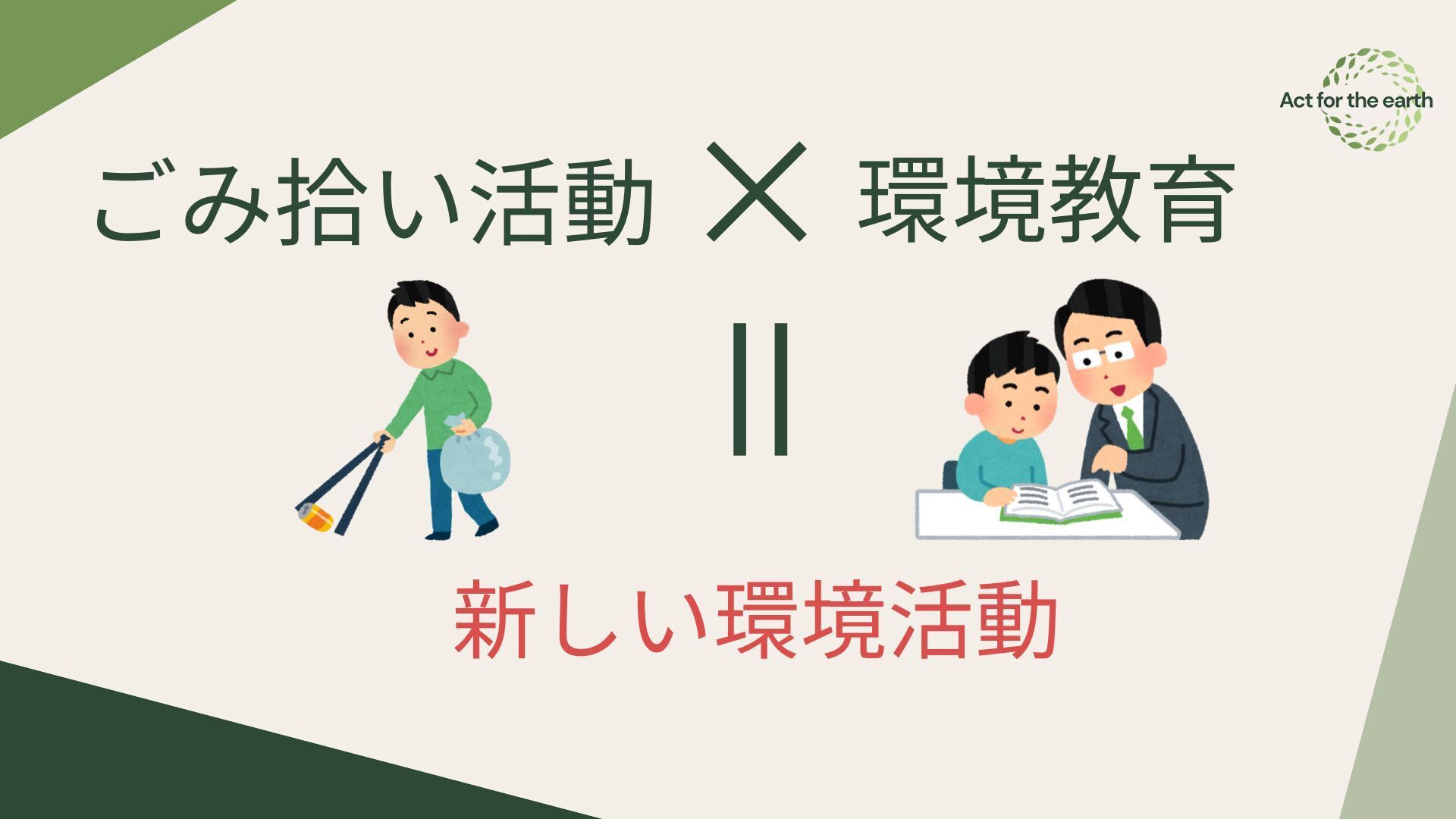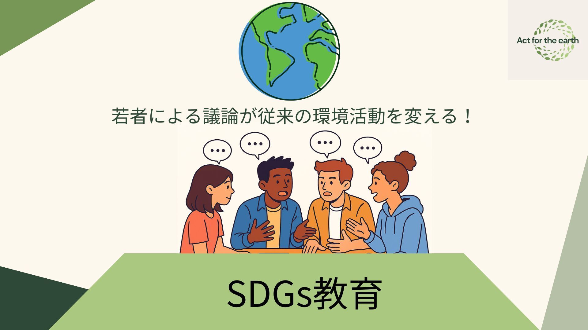 こんにちは、Act for the earthです!私たちは若者の力で環境活動に新しい風を起こすために活動している学生団体です!