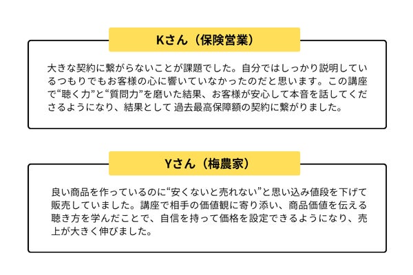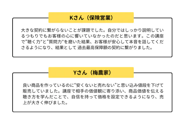 • お客様の「本当のニーズ」を引き出せるようになり、売り込み不要のセールスが可能に
