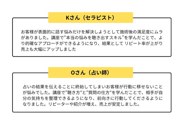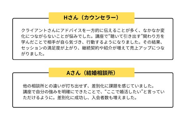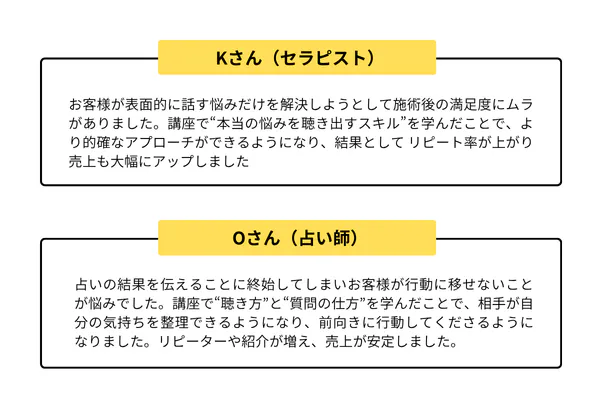 • 相手の言葉の裏にある「本音」や「願い」が聴けるようになる
