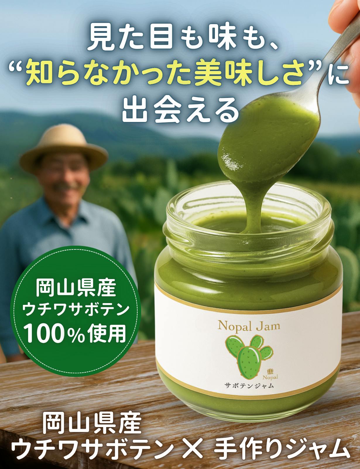 このジャムは、岡山県でベテラン農家さんが丁寧に育てたウチワサボテンを100%使用。