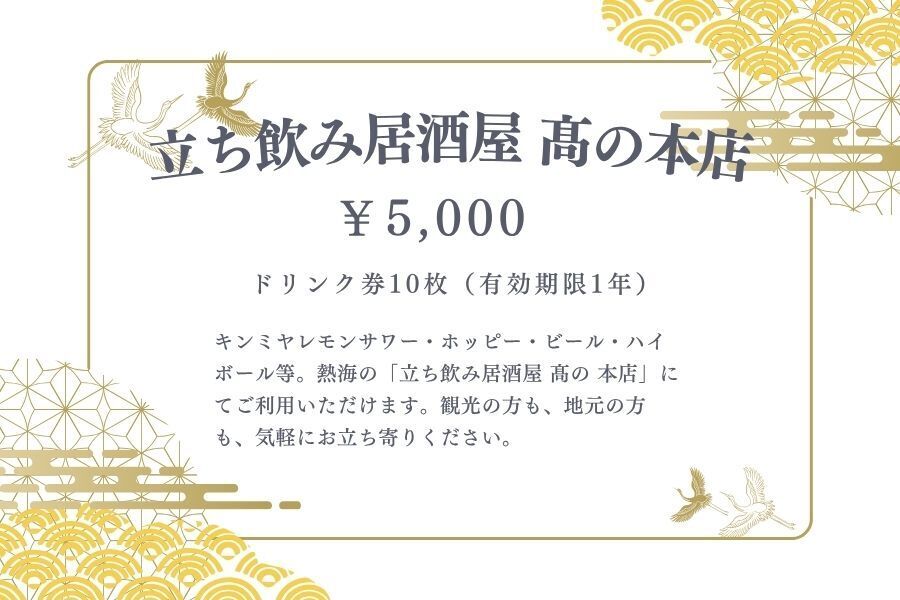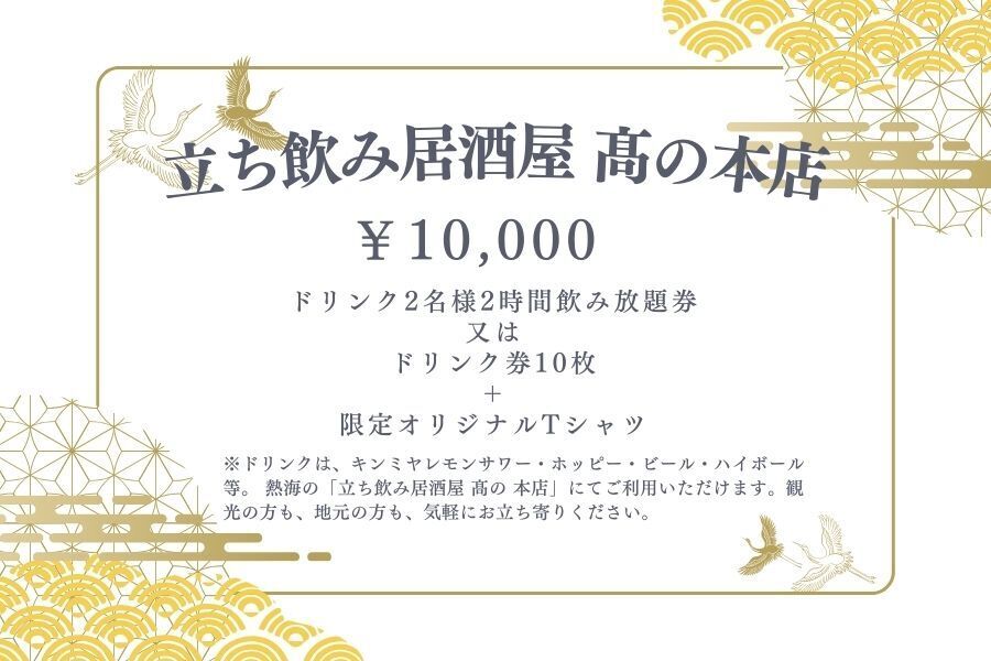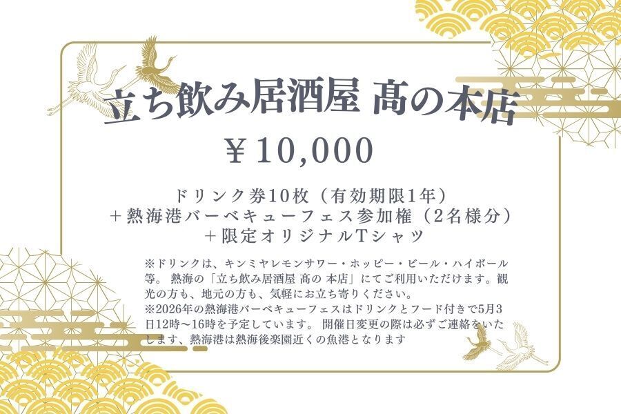 「立ち飲み居酒屋 髙の 本店」は、確かに小さなお店です。でも、小さな一歩が大きな変化の始まりだと信じています。40年前に見た あの輝く熱海 を、今度は私たちの手で、次の世代に残したい。子どもたちが「素敵な街だね」と誇れる熱海を、もう一度創り上げたいのです。一人ではできないことも、皆様と一緒なら必ず実現できる。あなたの温かいご支援が、熱海の未来を照らす希望の光となります。どうか、私と一緒に新しい熱海の物語を紡いでください。