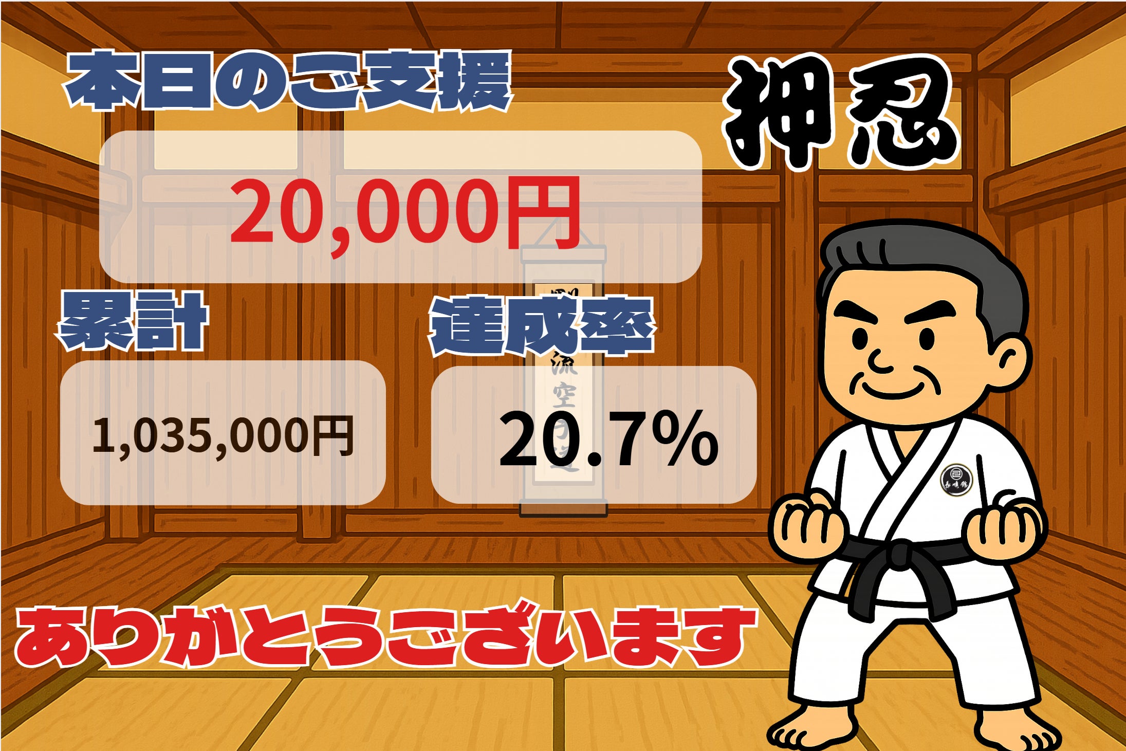 昨日は 20,000円 のご支援をいただき、累計は 1,035,000円、達成率は 20.7% となりました。