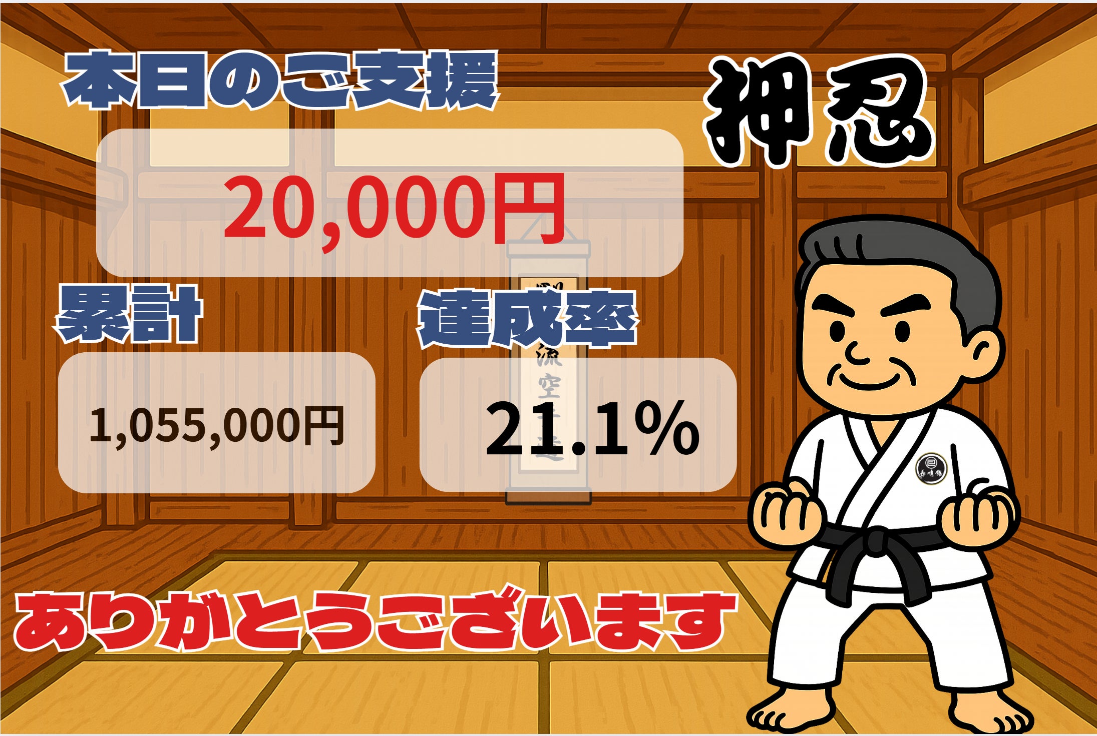 昨日は 20,000円 のご支援をいただき、累計は 1,055,000円、達成率は 21.1% となりました。