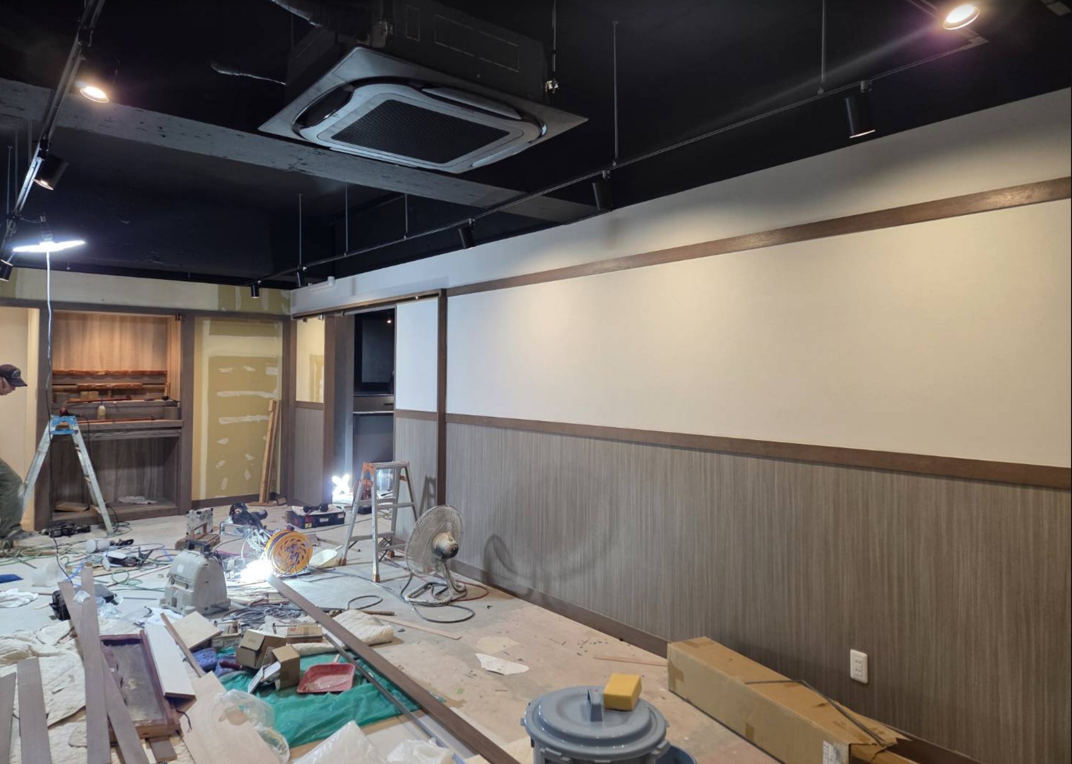 壁紙が貼られ、空間全体の雰囲気が一気に整ってきています。
