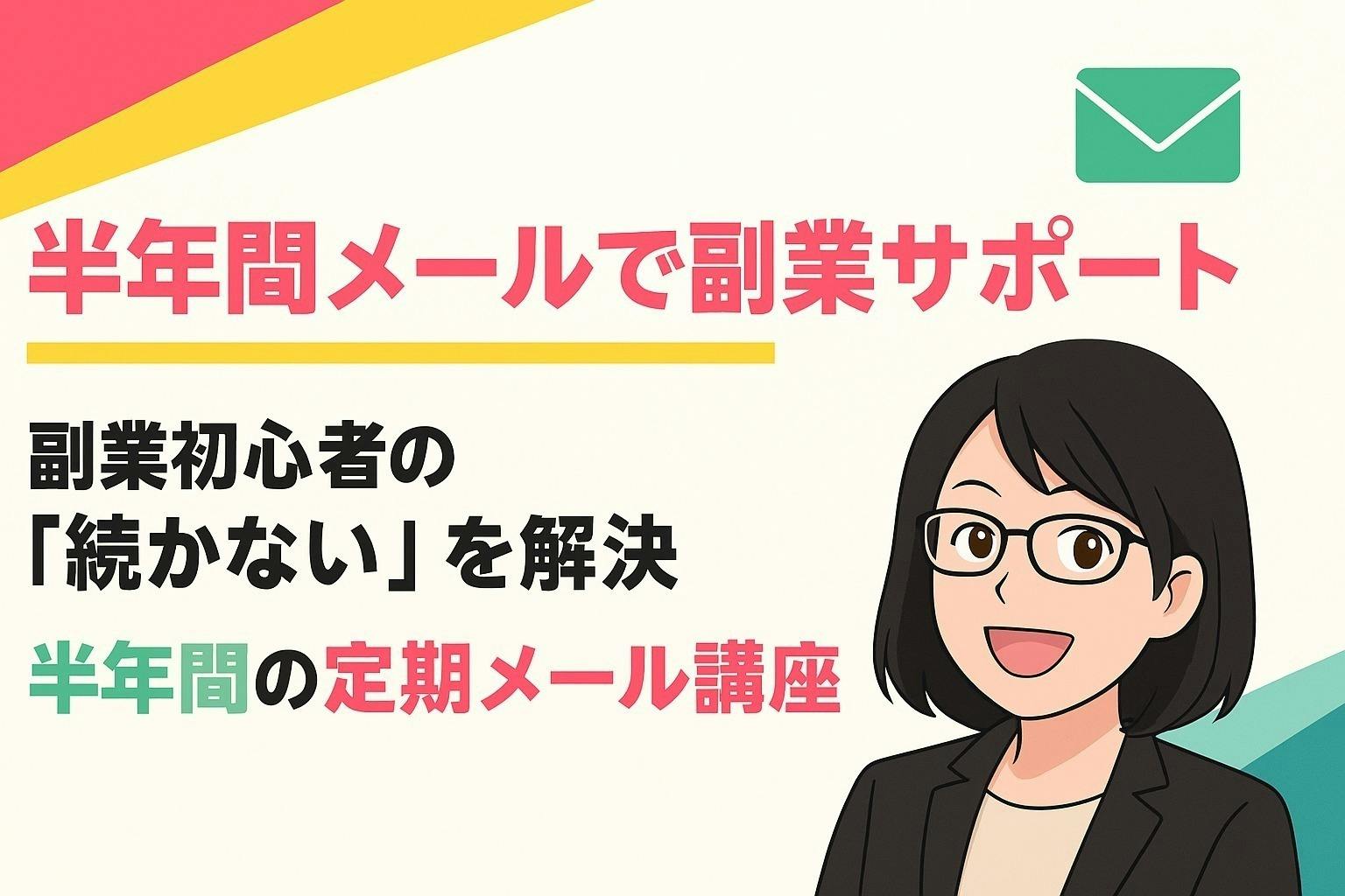 副業初心者の方に向けて、**月1回×半年間のメール講座(全6回)**をお届けします。