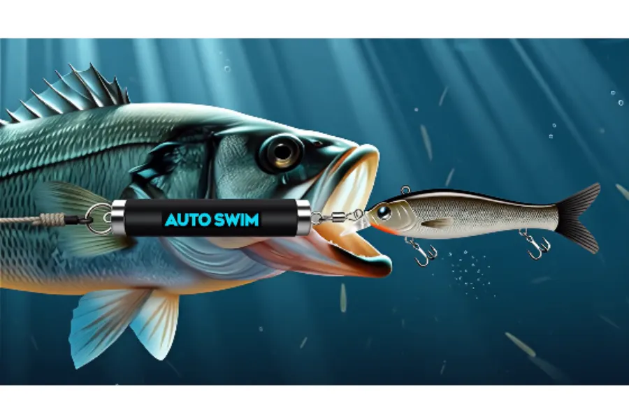 AUTO SWIM はモーター等で強制駆動する装置ではなく、ルアー本来の形状が持つ“自然なスイムアクション”を引き出す機械式アタッチメントです。